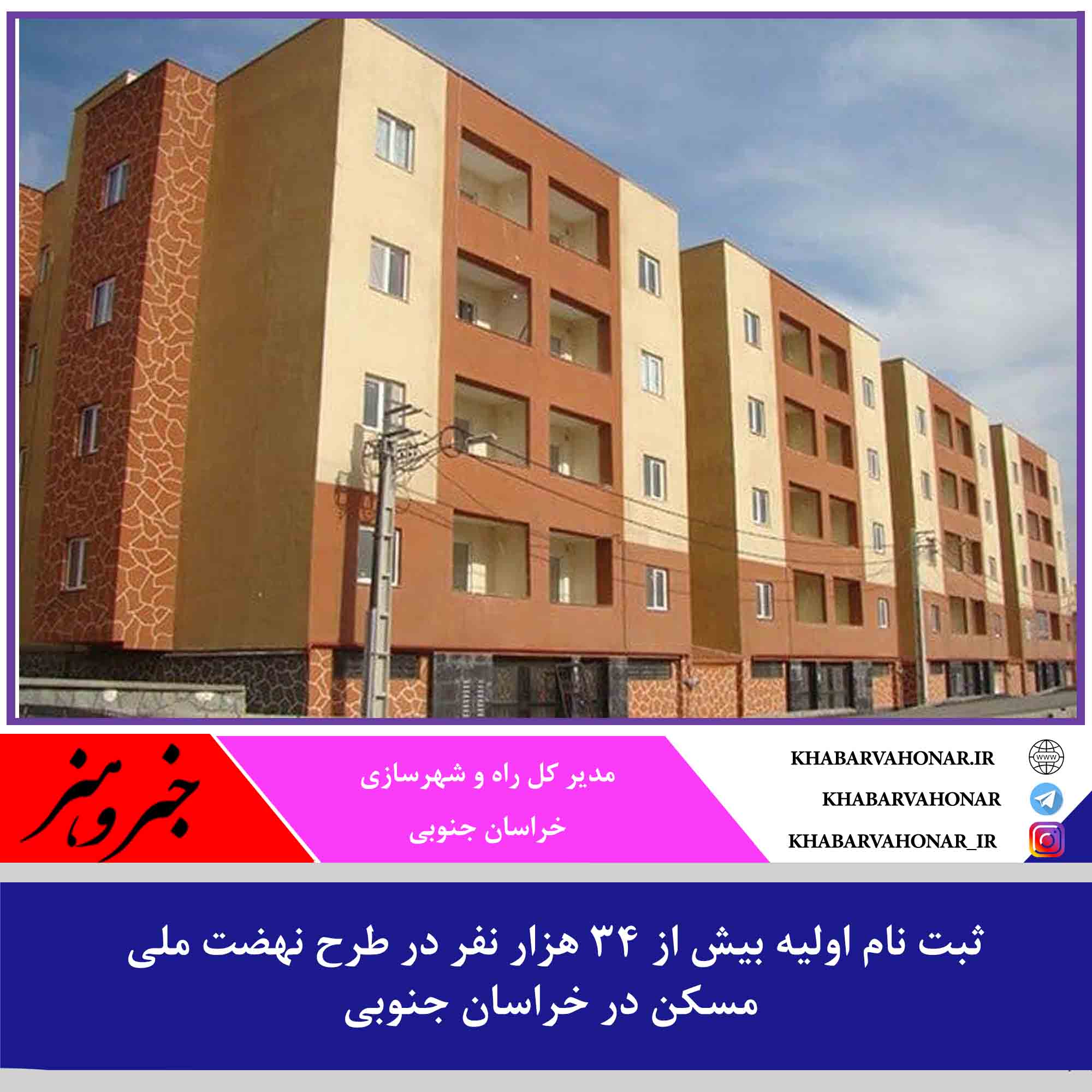تاکنون بیش از ۳۴ هزار نفر در خراسان جنوبی در طرح نهضت ملی مسکن ثبت نام اولیه را انجام داده اند.