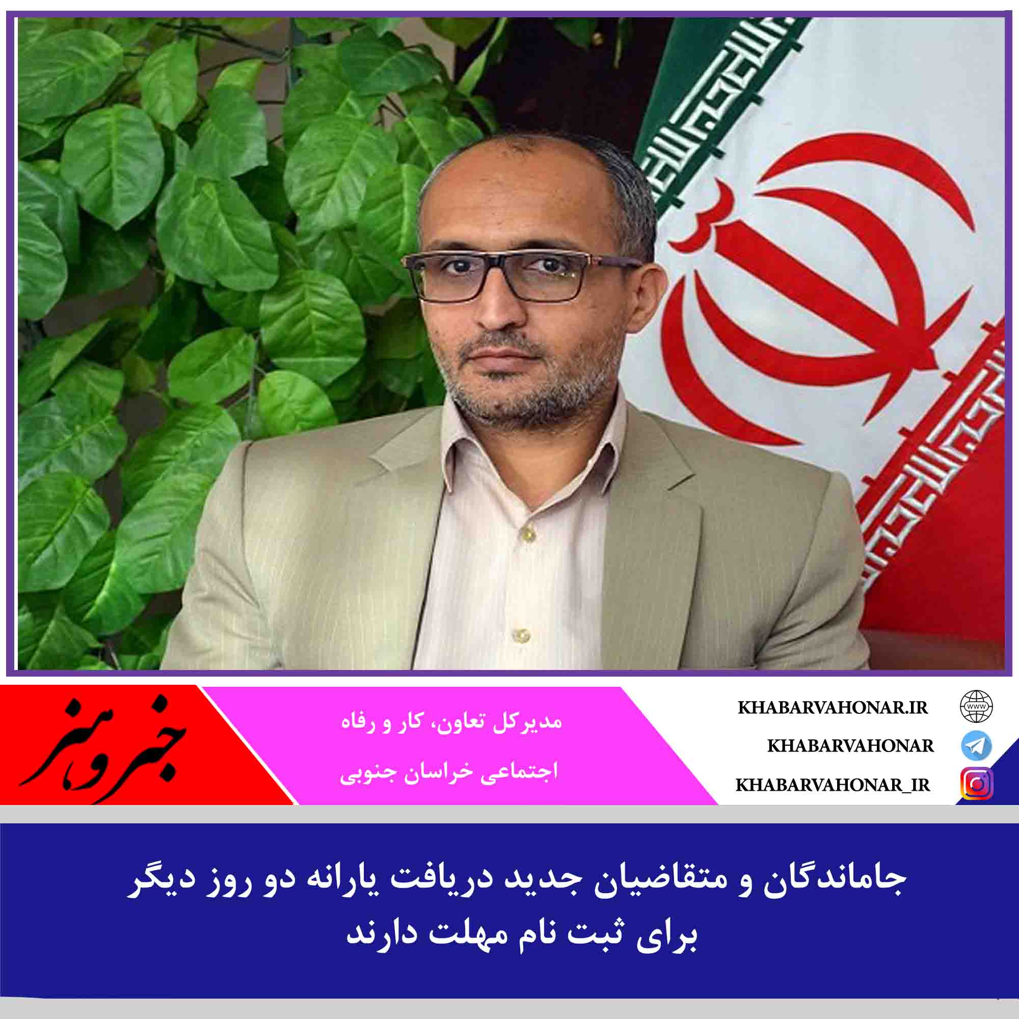 ?مدیرکل تعاون، کار و رفاه اجتماعی خراسان جنوبی گفت : جاماندگان و متقاضیان جدید دریافت یارانه دو روز دیگر برای ثبت نام مهلت دارند