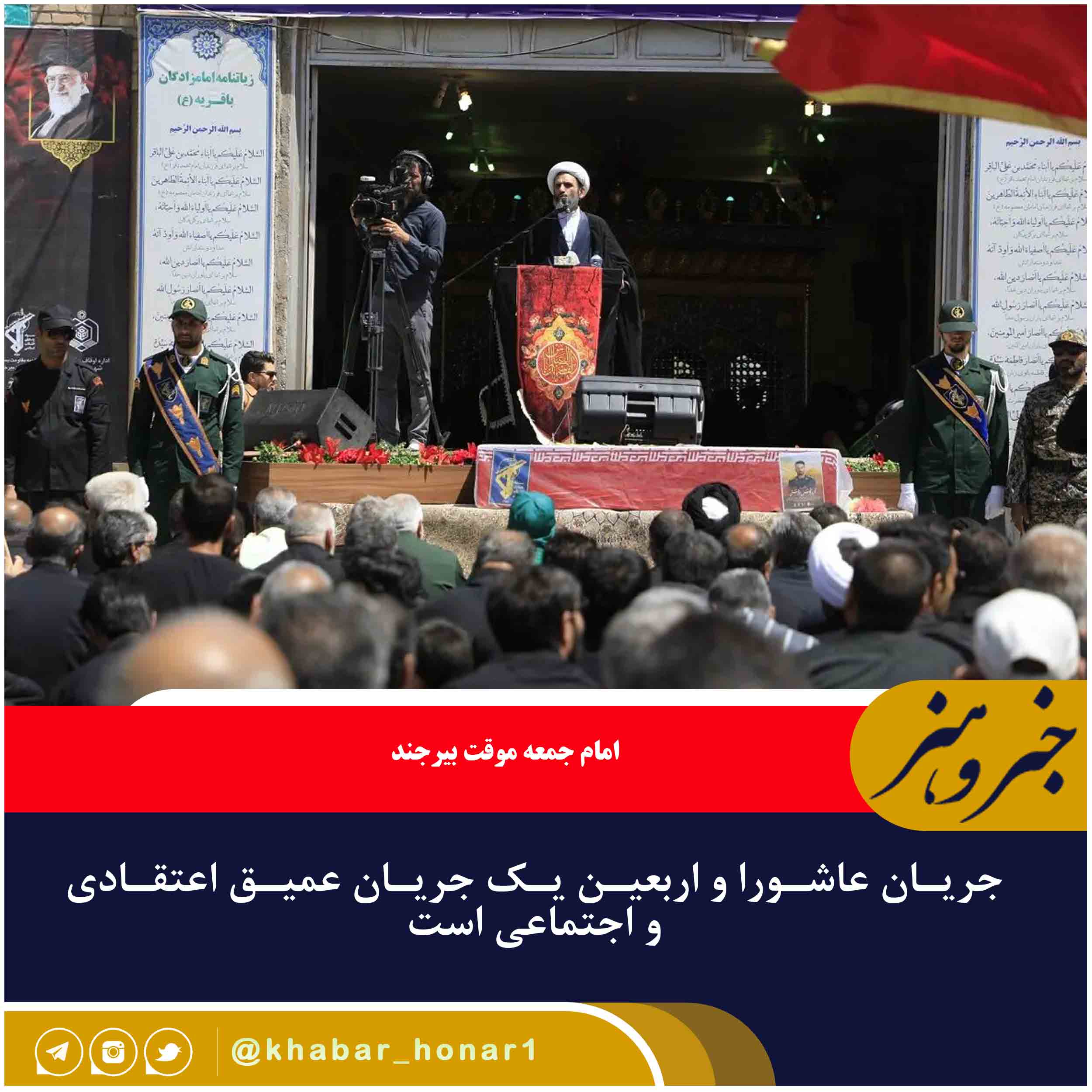 امام جمعه موقت بیرجند با اشاره به فرمایشات اهل بیت(ع) بیان کرد: طبق تعالیم زیارت اربعین، مؤمنین باید در سه عرصه نخست با قلبی سوخته و محزون از ظلمی که بر اهل بیت(ع) رفته، سپس با شعلهور شدن از عشق به آنان، و در نهایت با اقدام عملی در راستای اهداف ایشان حضور فعال داشته باشند.