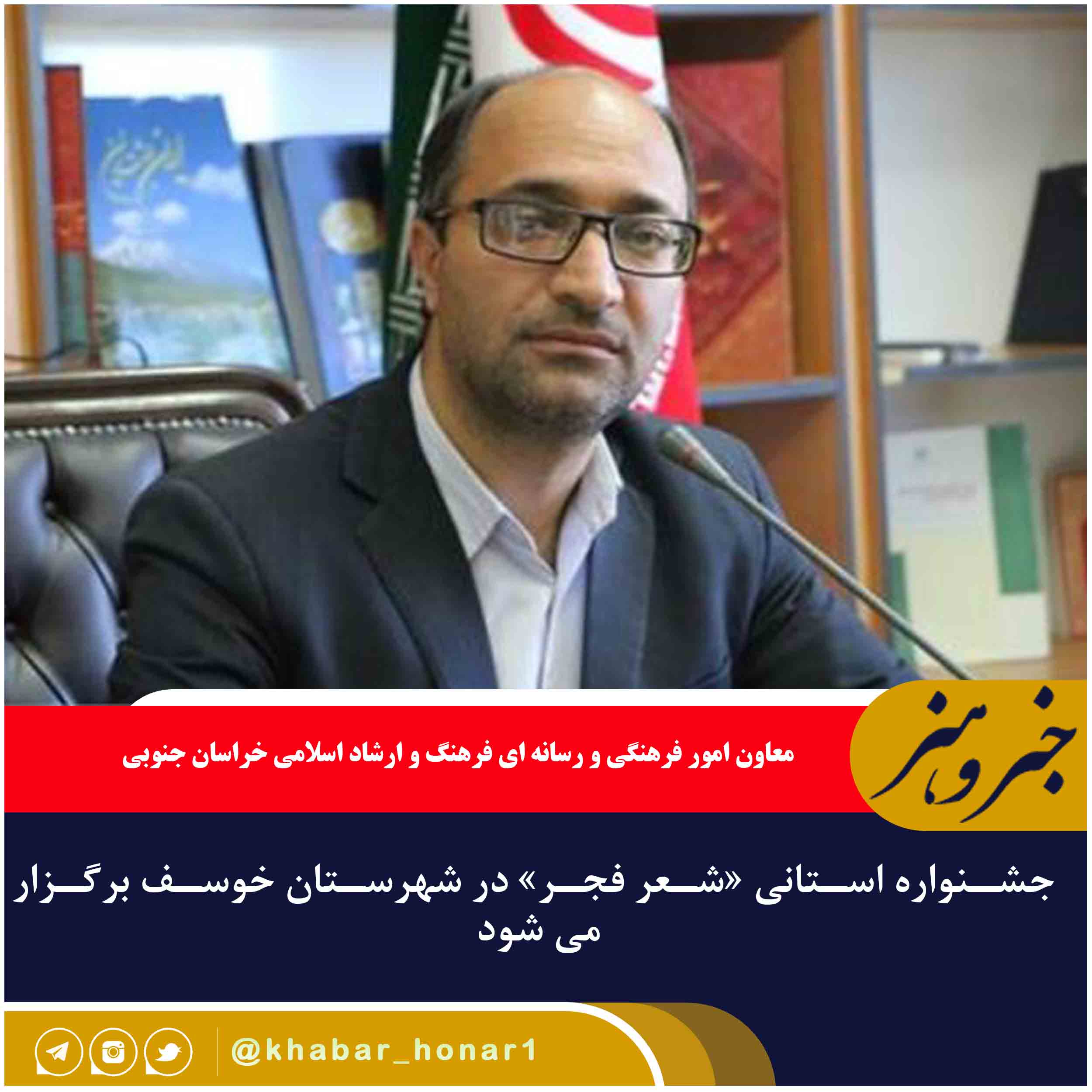 معاون امور فرهنگی و رسانه ای فرهنگ و ارشاد اسلامی خراسان جنوبی از برگزاری جشنواره استانی شعر فجر طی سال جاری در خوسف خبر داد.