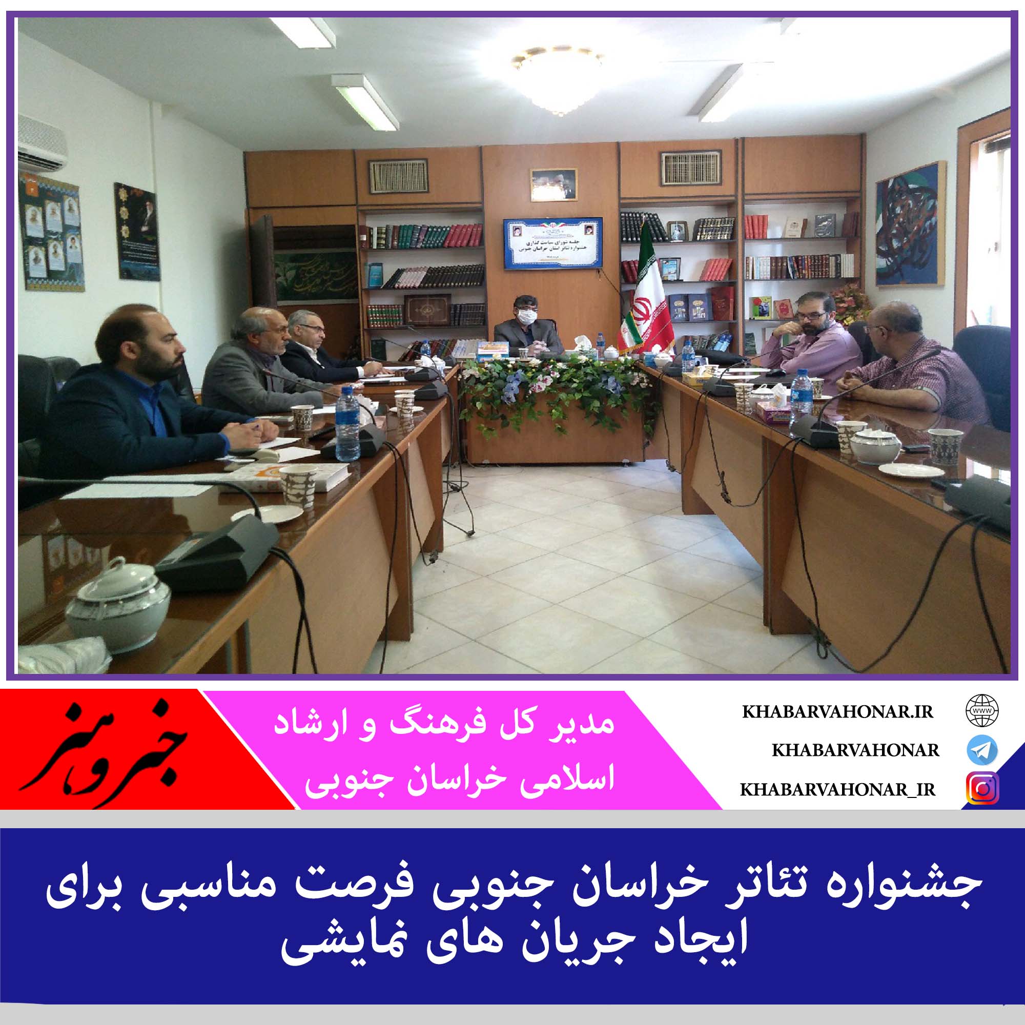 زمزم معاون امور هنری و سینمایی اداره کل فرهنگ و ارشاد اسلامی خراسان جنوبی نیز شیوه نامه ابلاغی برای جشنواره تئاتر استان ها را قرائت کرد و سایر اعضا در این خصوص به اظهار نظر پرداختند.