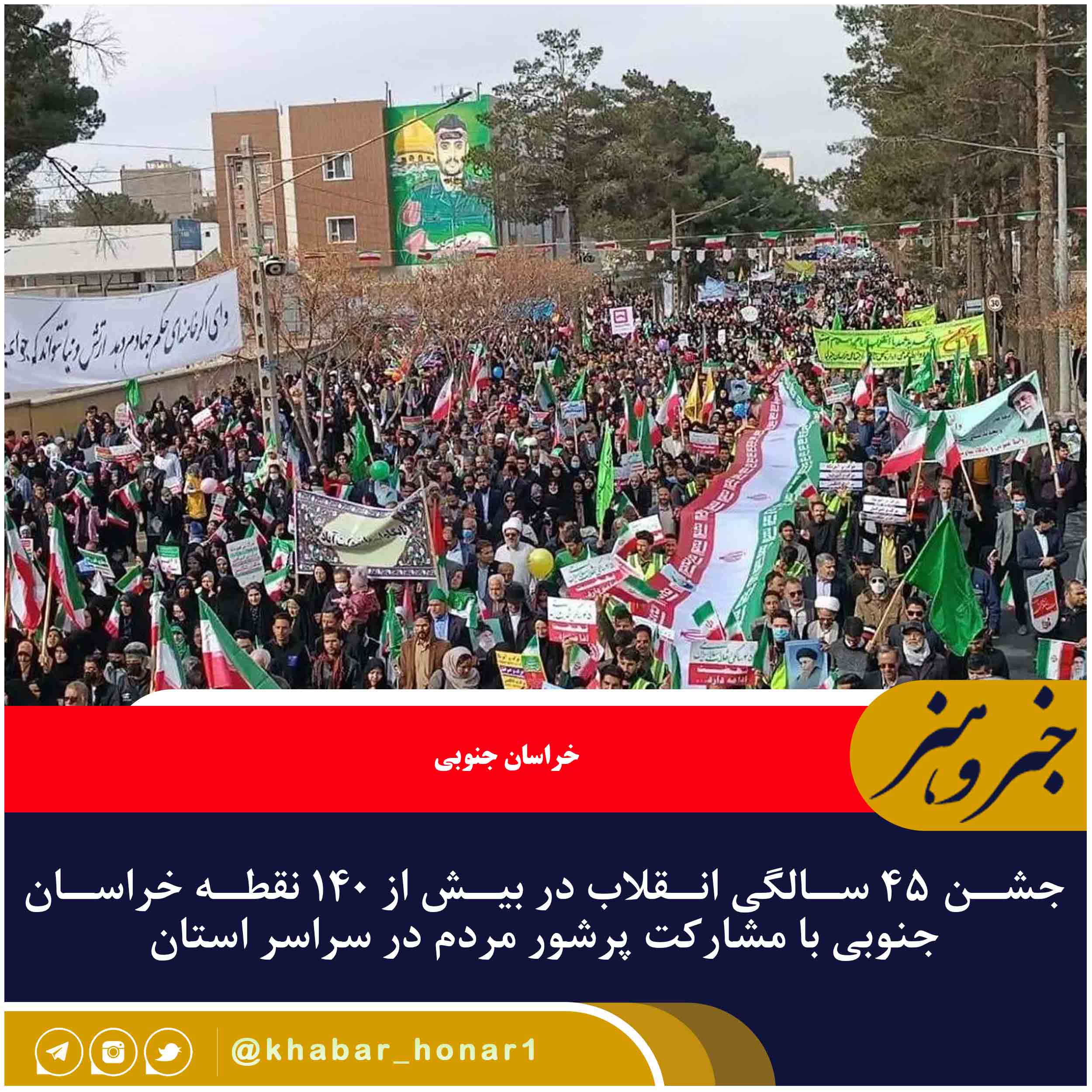 راهپیمایی ۲۲ بهمن همزمان با چهل و پنجمین سالروز پیروزی انقلاب اسلامی با مشارکت پرشور مردم در سراسر استان خراسان جنوبی برپا شد تا حماسهای دیگر از حضور مردم در پایبندی به آرمانهای انقلاب رقم بخورد.