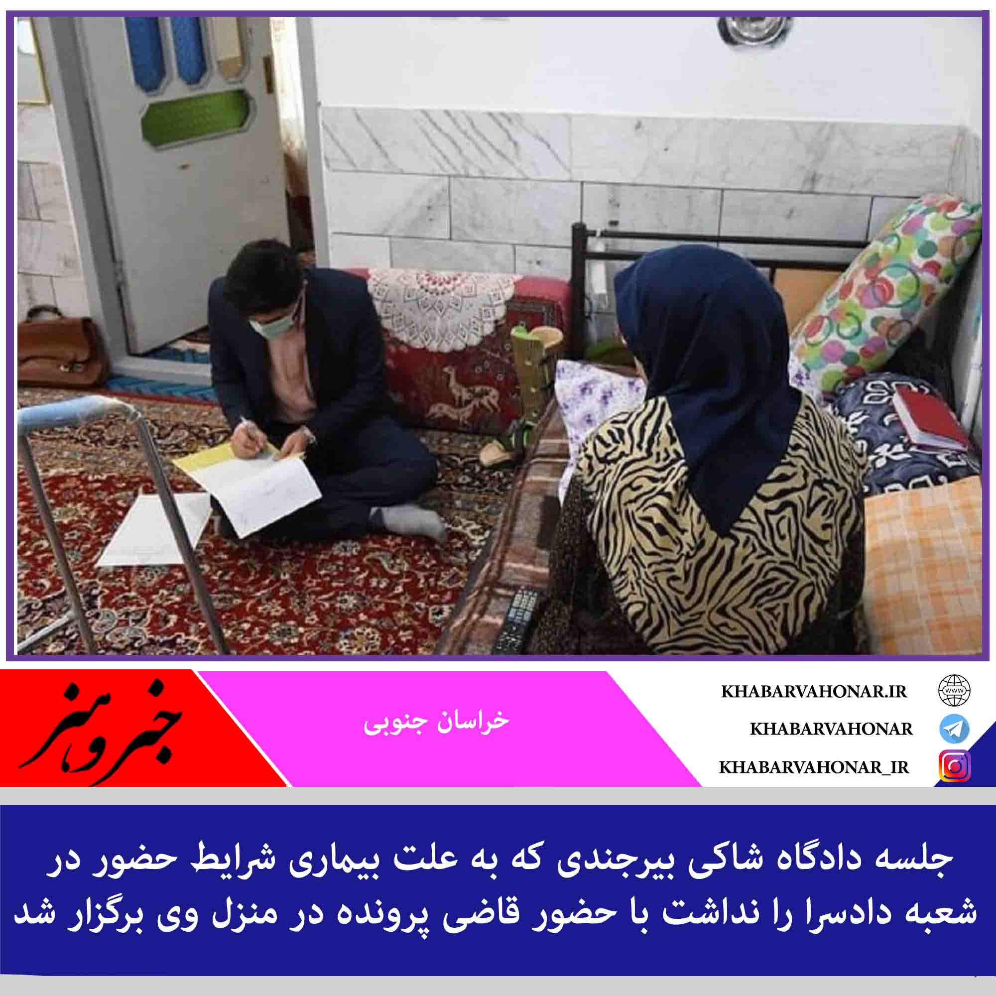 جلسه دادگاه شاکی بیرجندی که به علت بیماری شرایط حضور در شعبه دادسرا را نداشت با حضور قاضی پرونده در منزل وی برگزار شد.