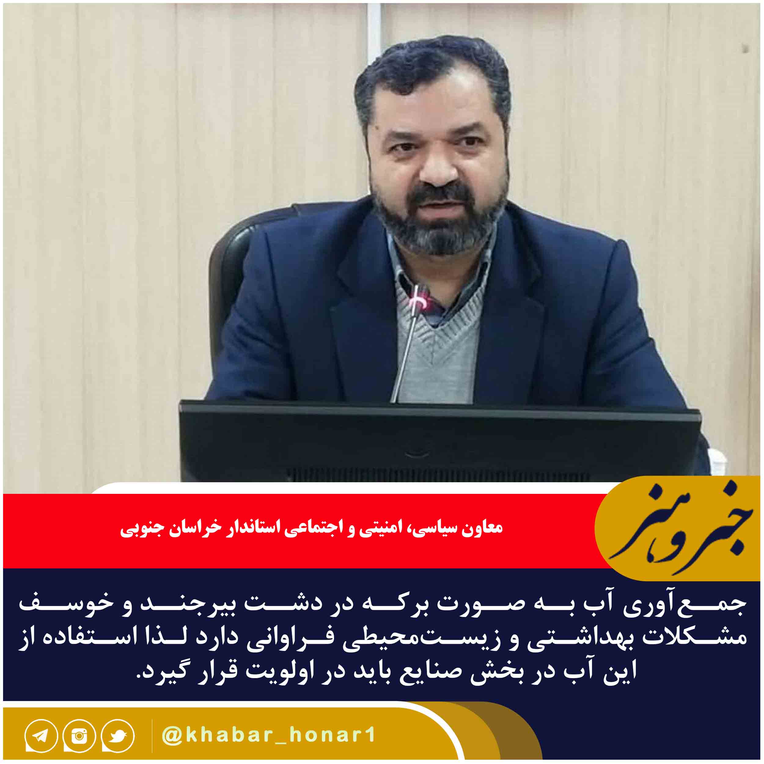 معاون سیاسی، امنیتی و اجتماعی استاندار خراسان جنوبی گفت: جمعآوری آب به صورت برکه در دشت بیرجند و خوسف مشکلات بهداشتی و زیستمحیطی فراوانی دارد لذا استفاده از این آب در بخش صنایع باید در اولویت قرار گیرد.