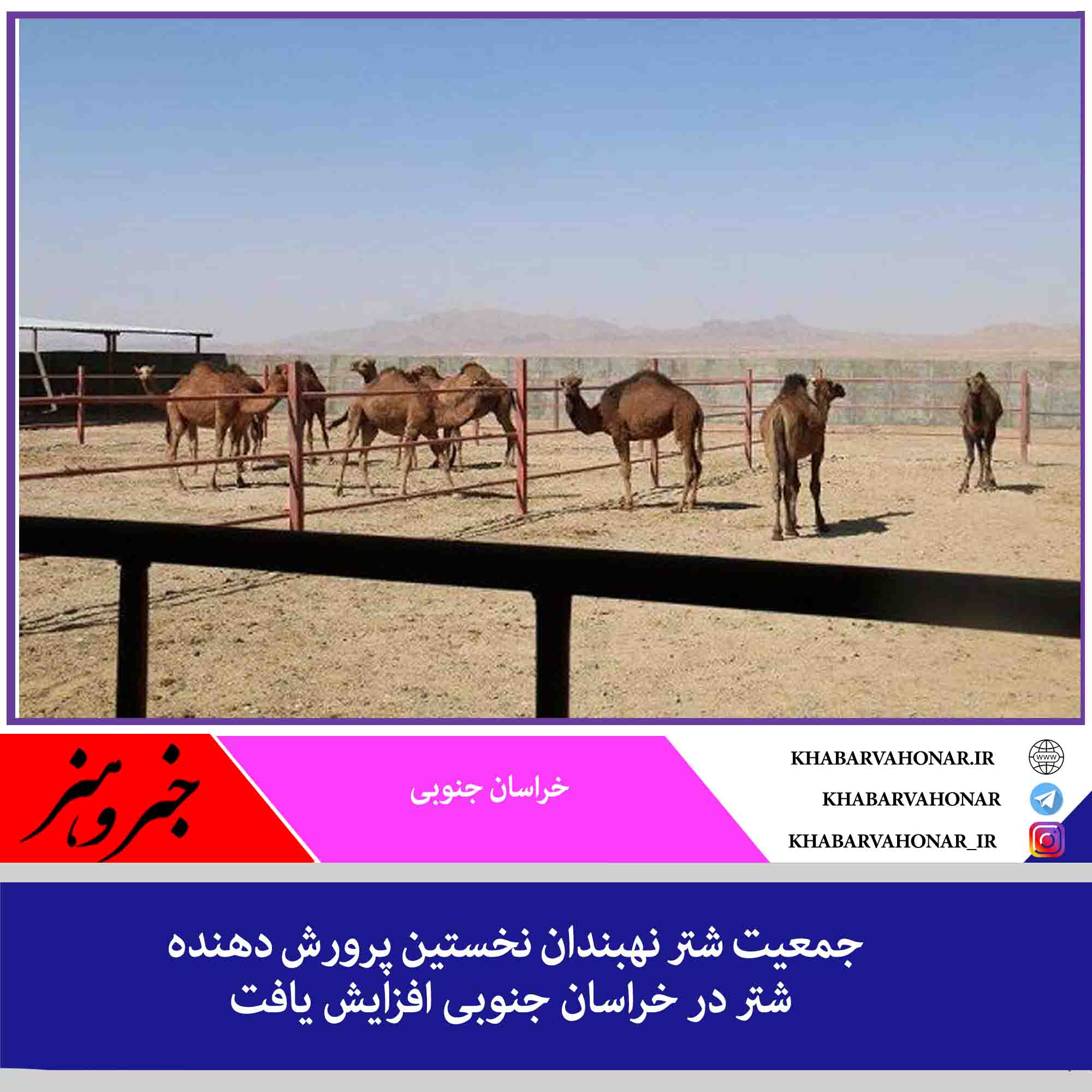 خراسان جنوبی دومین استان دارای جمعیت شتر (۳۰ هزار نفر) است که سالانه یک هزار و ۲۰۰ تن گوشت و یک هزار و ۵۰۰ تن شیر خام شتر در این استان تولید میشود.