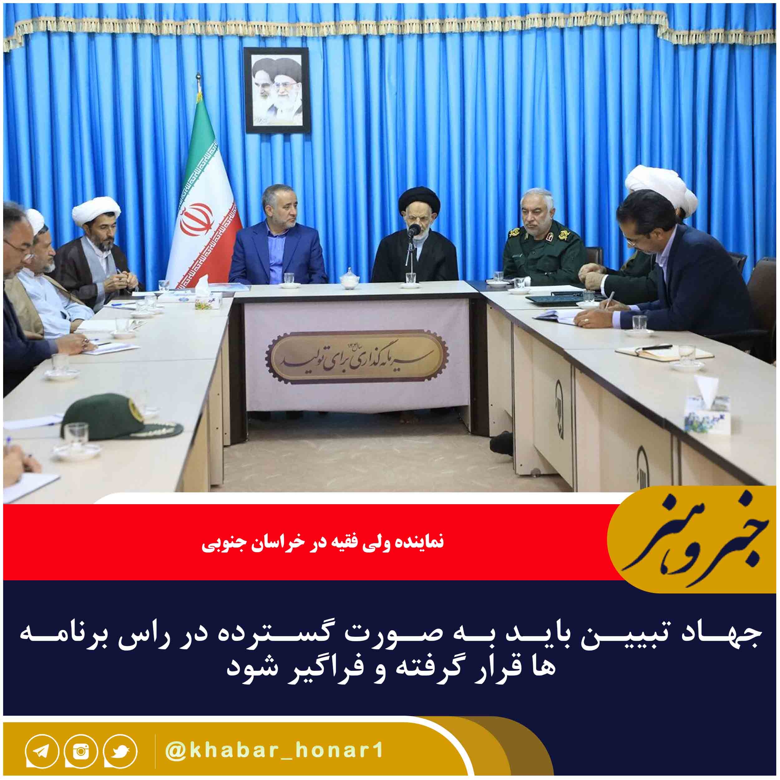 نماینده ولی فقیه در خراسان جنوبی با بیان اینکه برای جهاد تبیین باید اقدامات کارشناسی انجام شود گفت: تنها دفاع برای جامعه اسلامی و انسانی کافی نیست بلکه امروز برای نجات هشت میلیارد نفر جمیعت بشر باید مکتب غنی استان صادر شود.