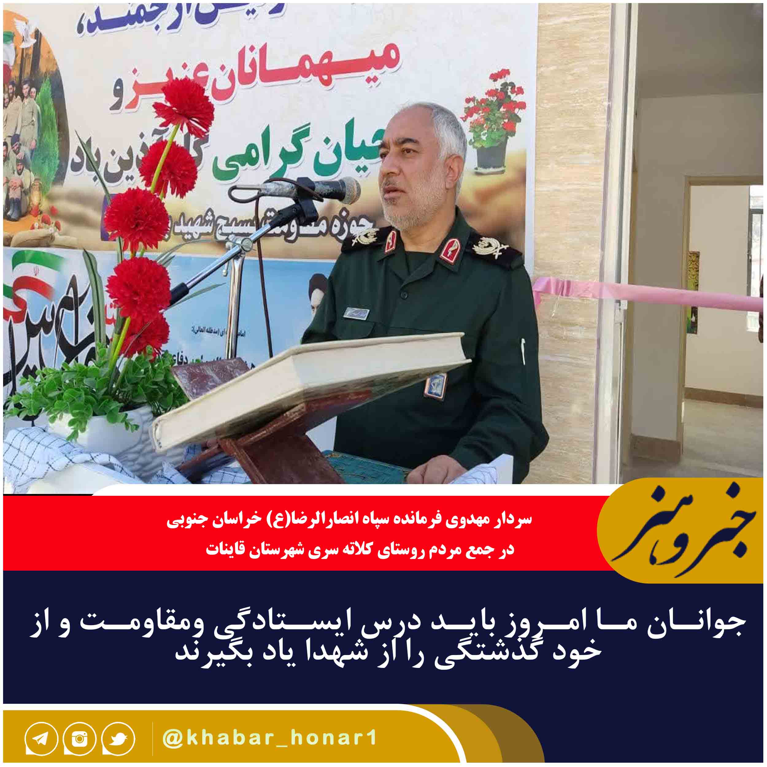 جوانان ما امروز باید درس ایستادگی ومقاومت و از خود گذشتگی را از شهدا یاد بگیرند و سر تعظیم پر برابر دشمن فرود نیاورند.