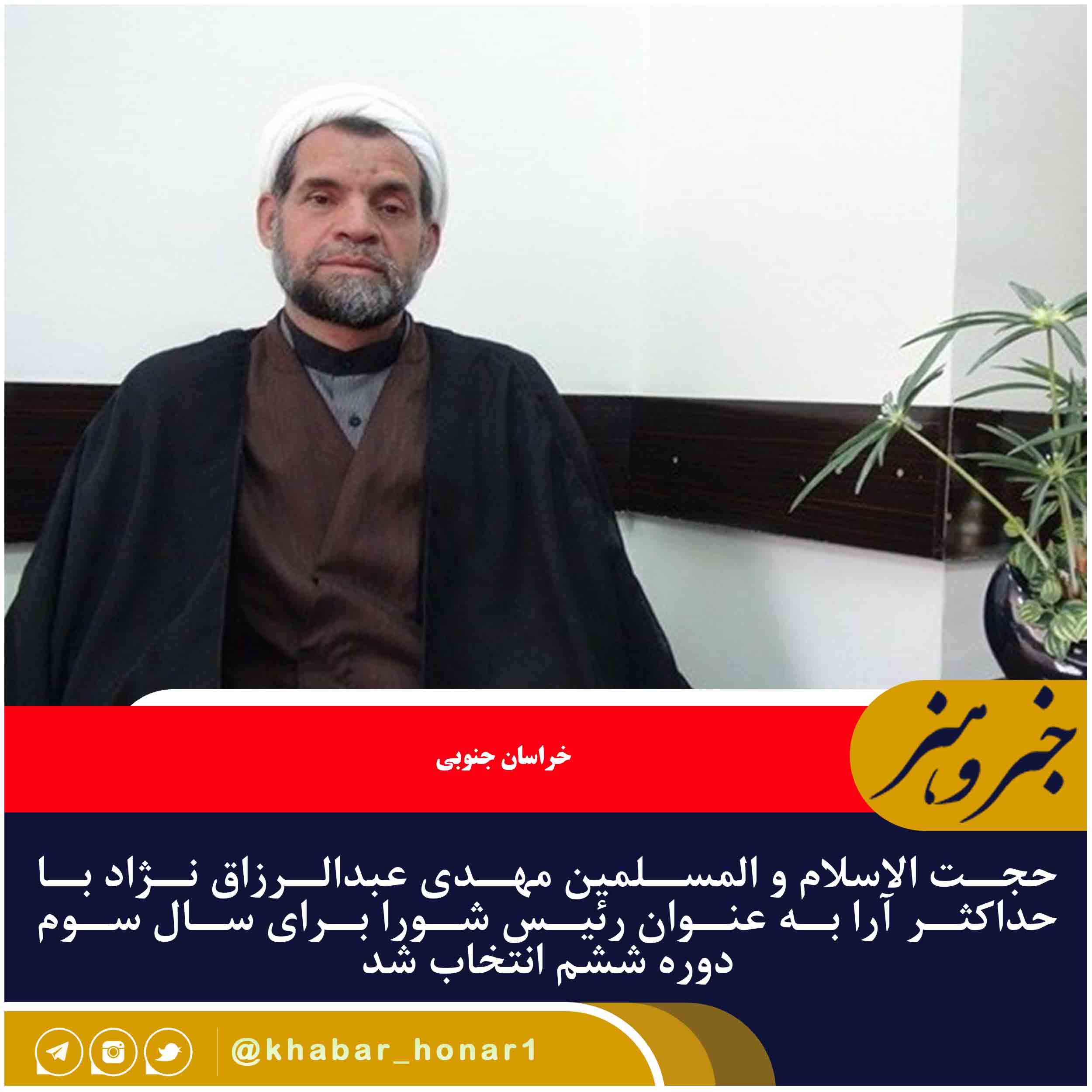 روز جاری در جلسه رسمی شورای شهر که با حضور کلیه اعضا برگزار شد حجت الاسلام و المسلمین مهدی عبدالرزاق نژاد با حداکثر آرا به عنوان رئیس شورا برای سال سوم دوره ششم انتخاب شد.