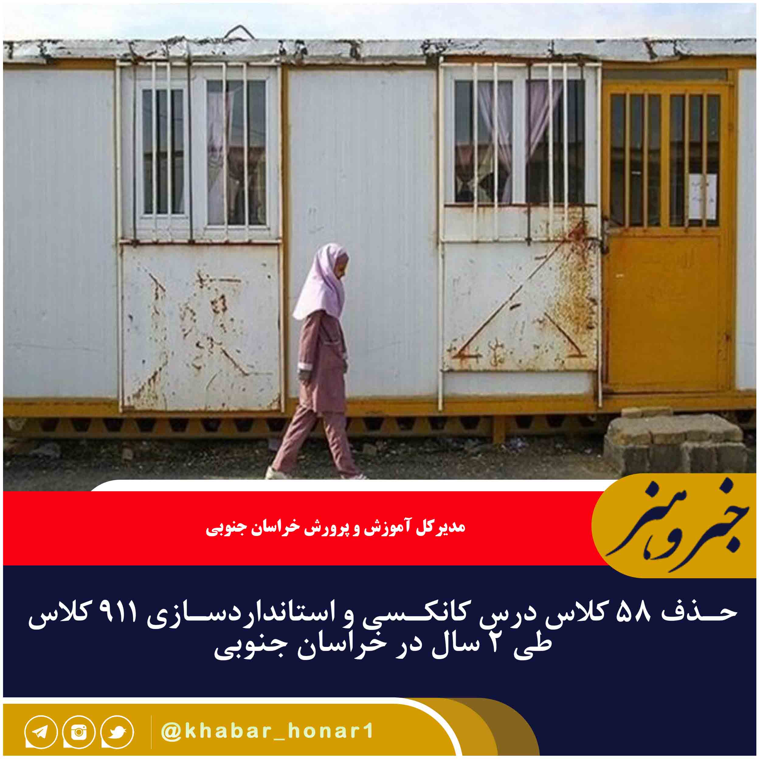 مدیرکل آموزش و پرورش خراسان جنوبی اظهار کرد: طی دو سال اخیر ۵۸ کلاس درس کانکسی حذف و ۹۱۱ کلاس درس نیز استانداردسازی شده است.