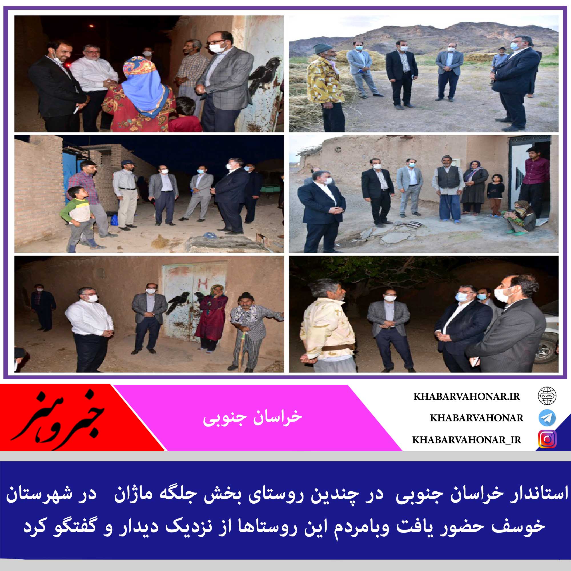 ?این گزارش حاکیست،مقام عالی دولت در استان باحضور در روستای ماژان در جریان آخرین مصوبات سفر استاندار به شهرستان خوسف وبخش جلگه ماژان قرار گرفت و دستورات لازم جهت تسریع روند اجرای آنها به مسئولین ذی ربط به صورت تلفنی صادر کرد.