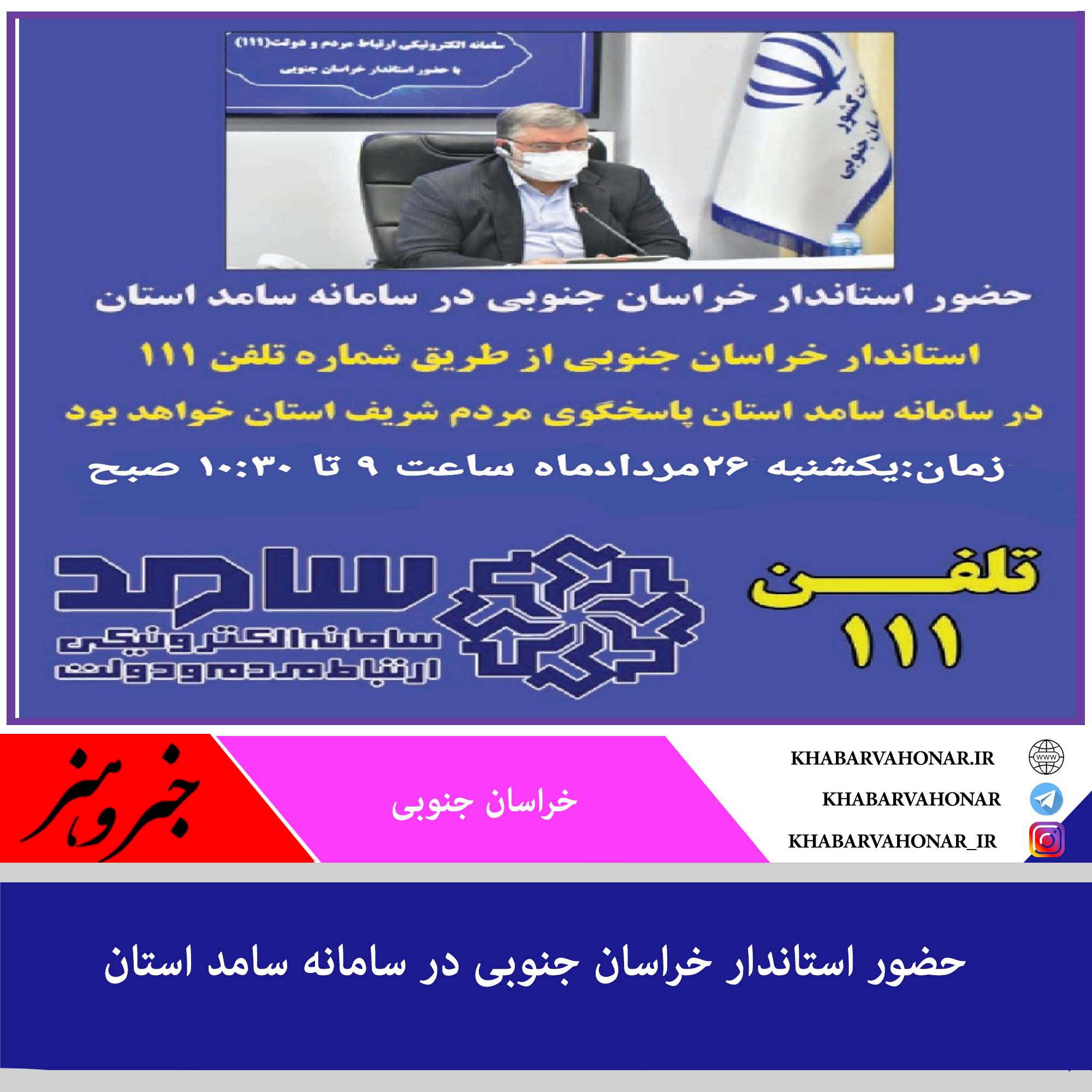 ?استاندار خراسان جنوبی از طریق شماره تلفن ۱۱۱ در سامانه سامد استان پاسخگوی مردم شریف استان خواهد بود.