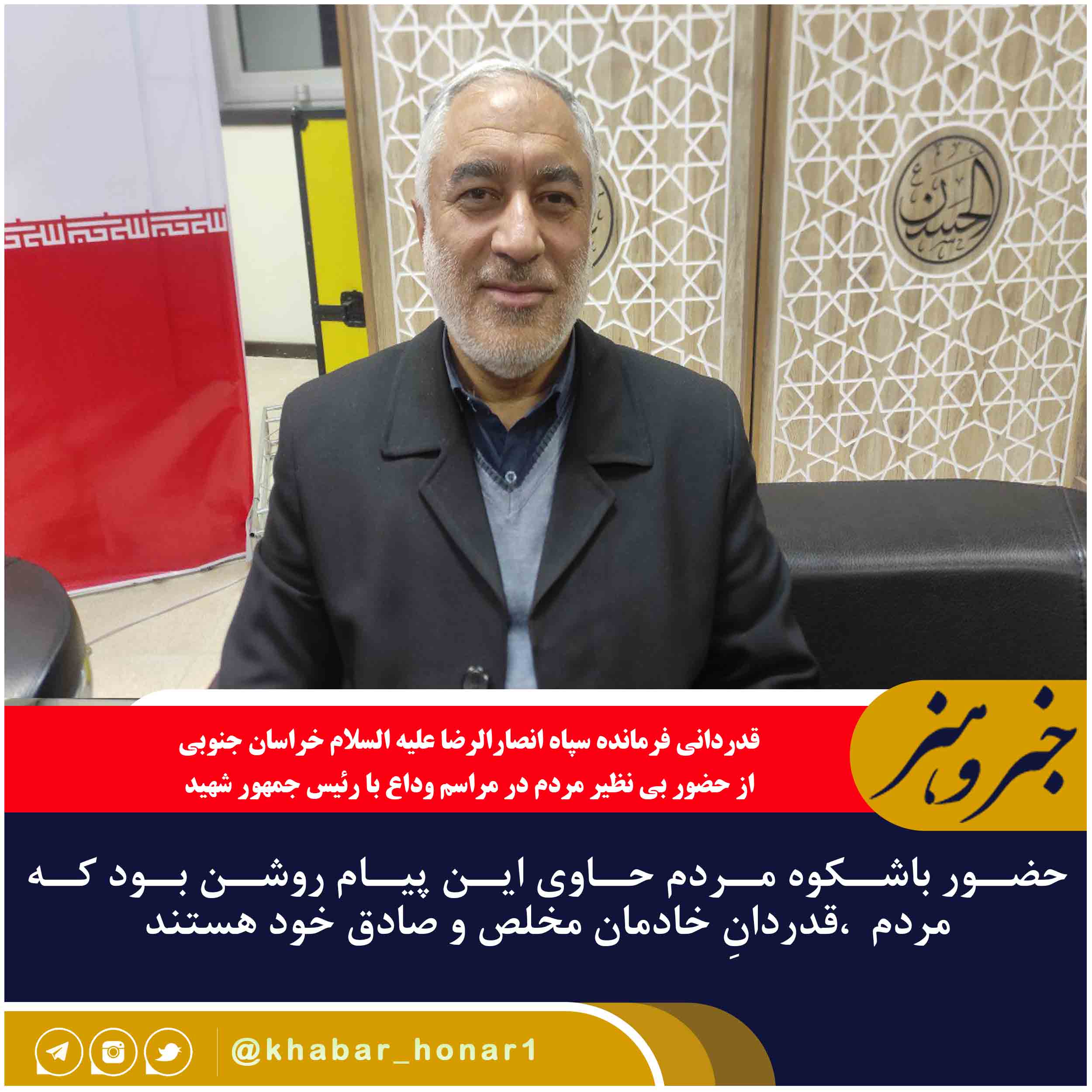 قدردانی فرمانده سپاه انصارالرضا علیه السلام خراسان جنوبی از حضور بی نظیر مردم در مراسم وداع با رئیس جمهور شهید