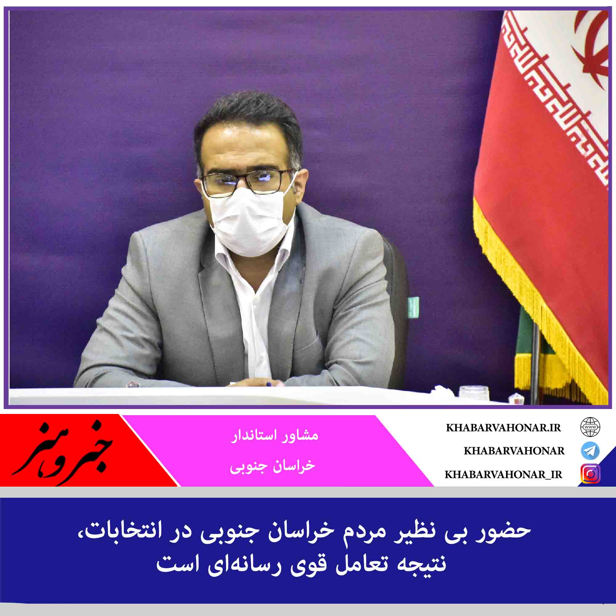 مشاور استاندار خراسان جنوبی گفت: تعامل و همکاری بی نظیر مجموعه رسانهها و روابط عمومی در استان باعث شد تا مردم خراسان جنوبی در انتخابات بیشترین مشارکت را داشته باشند و استان برتر کشور در این حوزه باشیم.