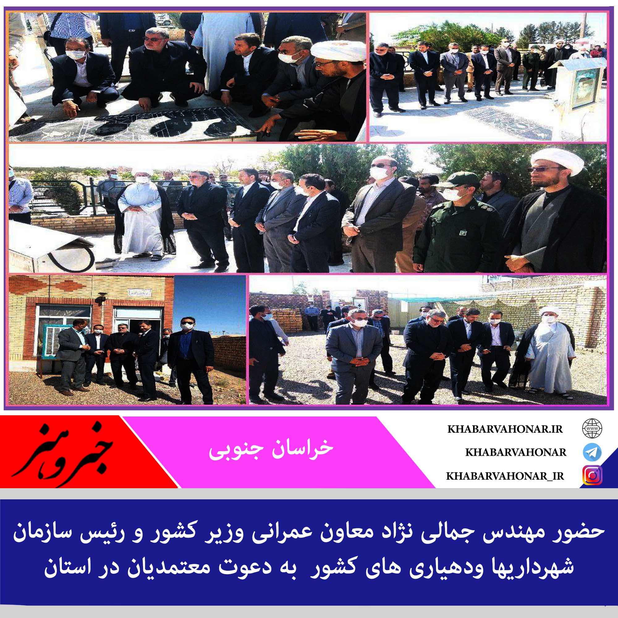 حضور مهندس جمالی نژاد معاون عمرانی وزیر کشور و رئیس سازمان شهرداریها ودهیاری های کشور ، استاندار خراسان جنوبی و جمعی از مدیران کل ستادی استان در شهرستان فردوس