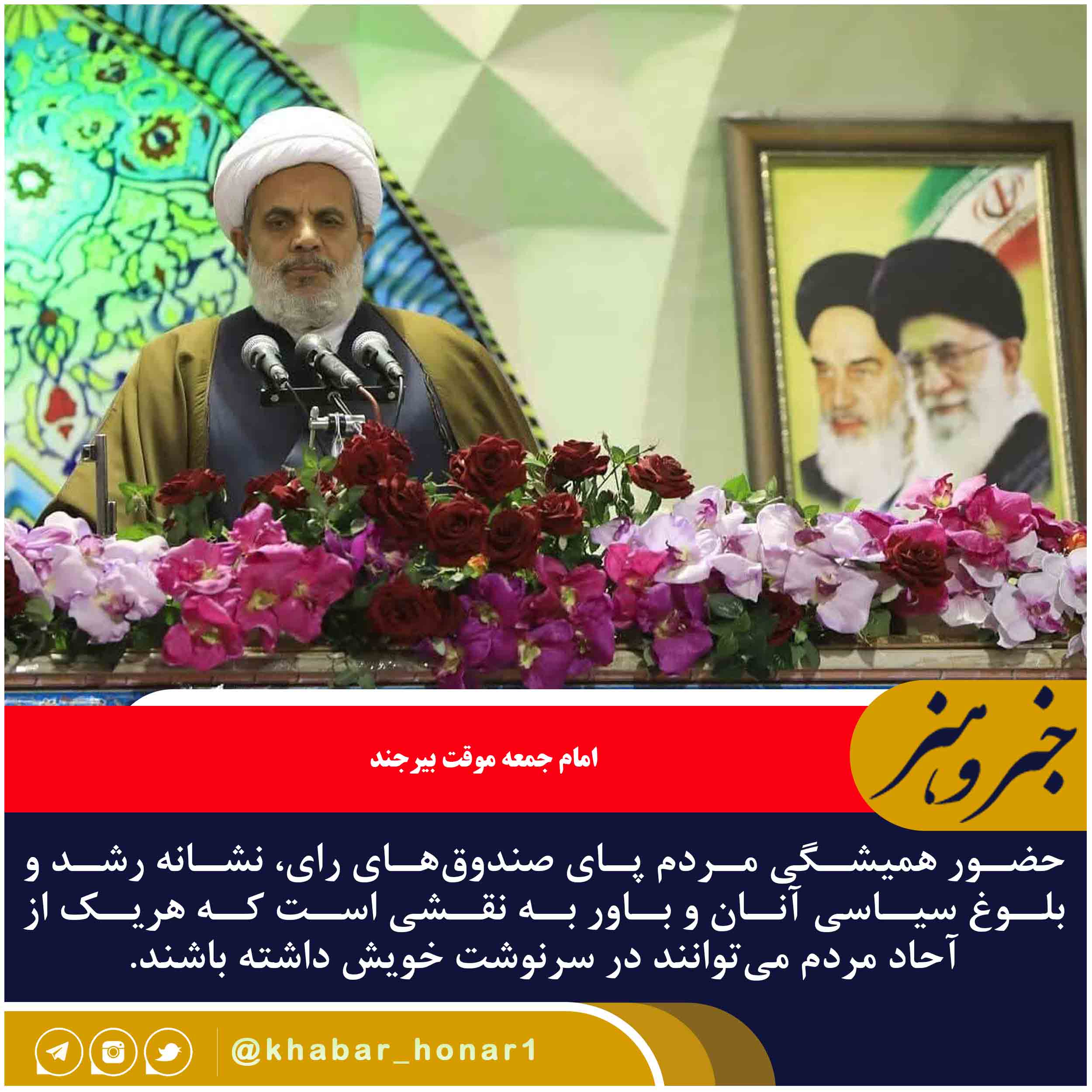 امام جمعه موقت بیرجند گفت: حضور مردم در انتخابات نشانه بلوغ سیاسی، هوشمندی و بیداری ملت نسبت به اصل نظام است.