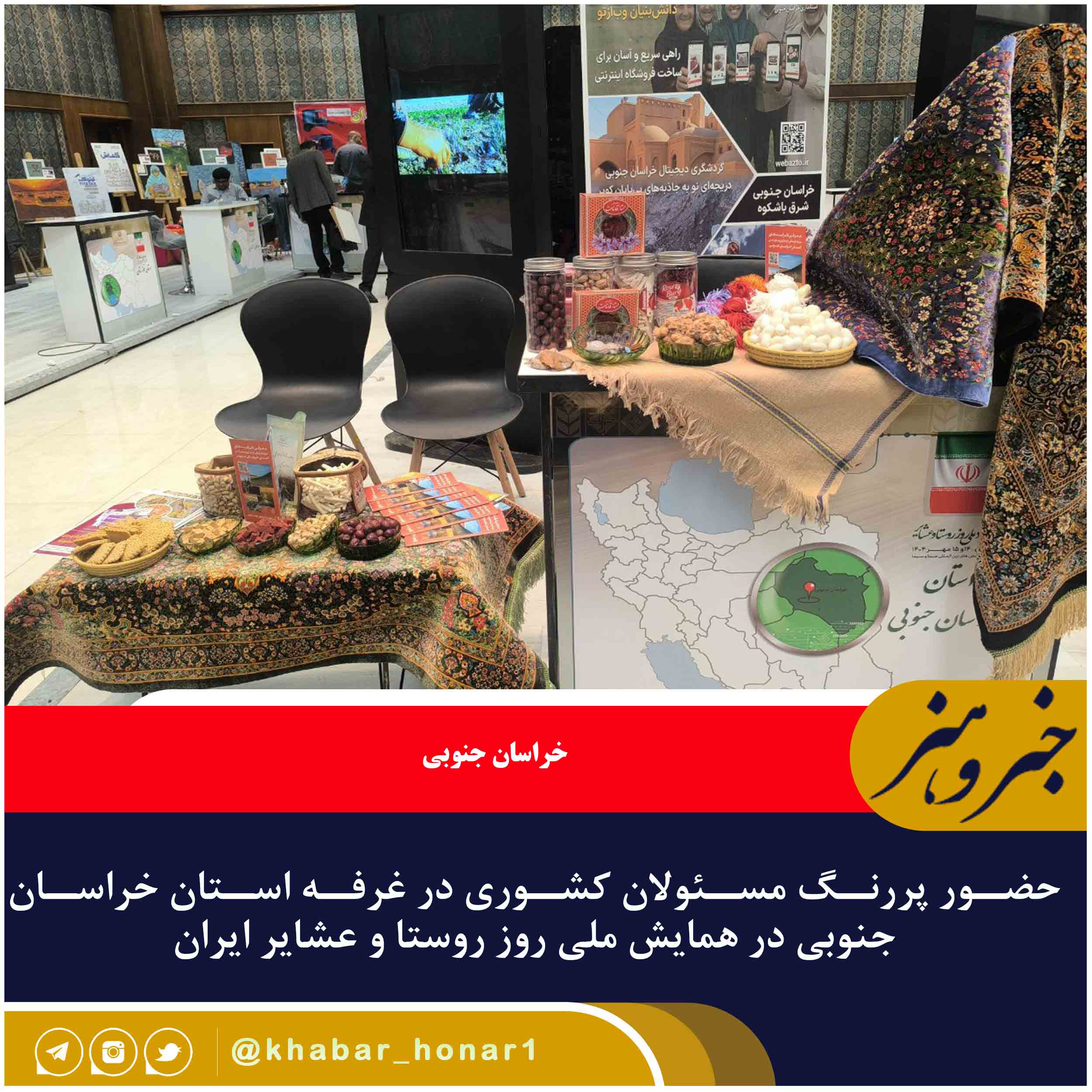 در جریان برگزاری همایش و نمایشگاه ملی روز روستا و عشایر که در تاریخ ۱۴ مهرماه در مرکز همایش‌های صداوسیما تهران برگزار شد، غرفه استان خراسان جنوبی میزبان جمعی از مسئولان بلندپایه کشوری بود که با حضور خود، از ظرفیت‌ها و دستاوردهای این استان در حوزه روستا و عشایر بازدید کردند.