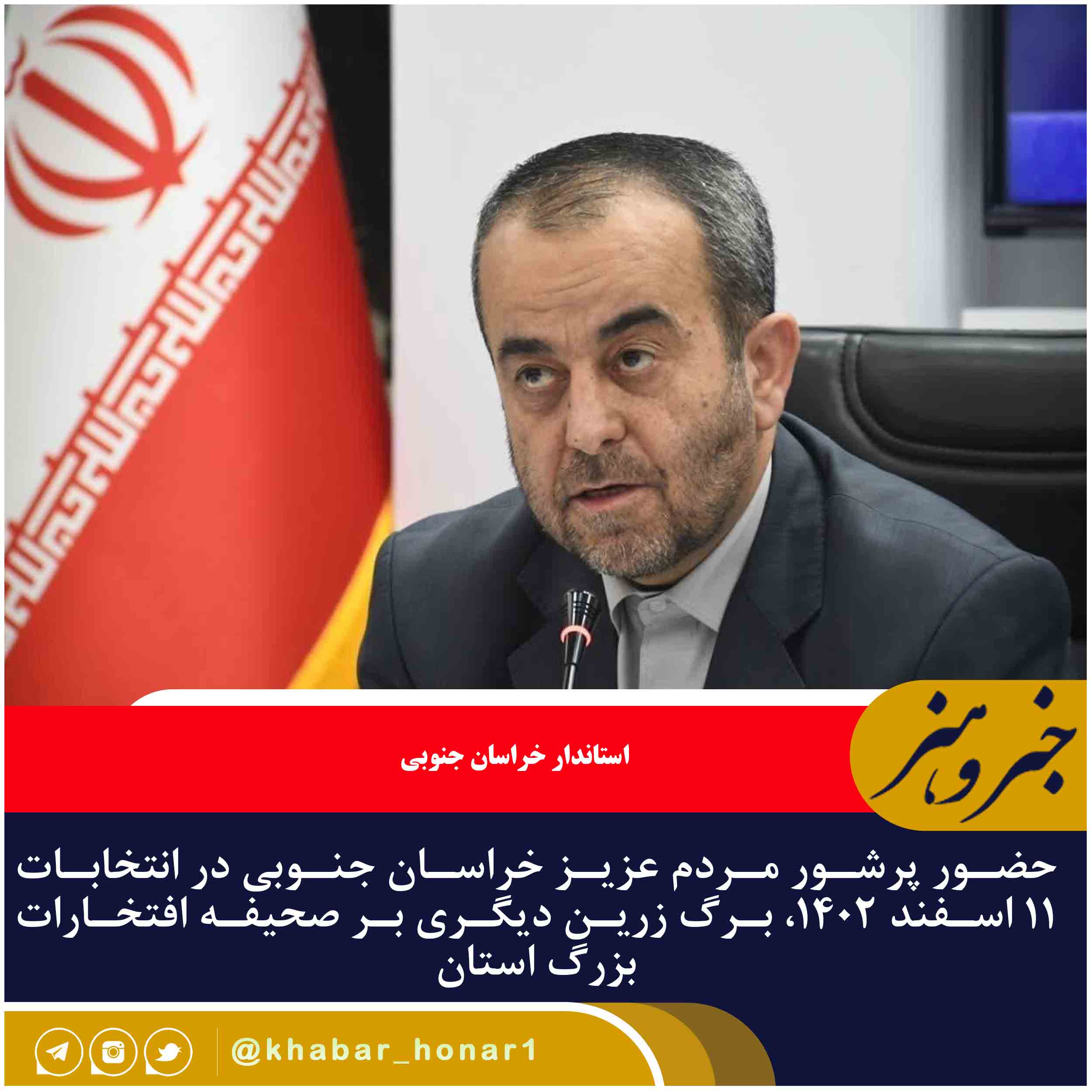 استاندار خراسان جنوبی در پیامی از حضور پرشور مردم استان در انتخابات ۱۱ اسفند تشکر کرد.