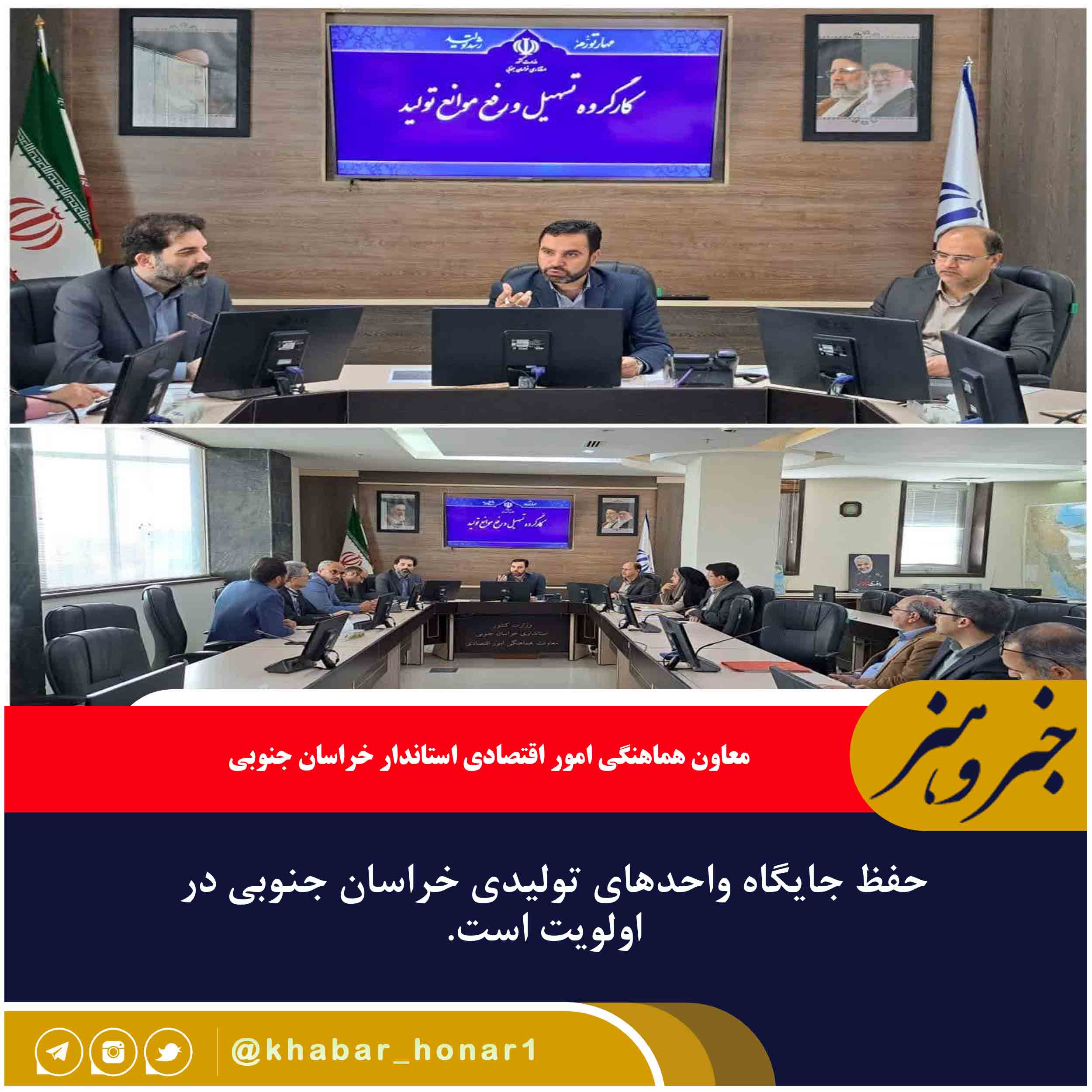 معاون هماهنگی امور اقتصادی استاندار خراسان جنوبی گفت: هدف اصلی ما در کارگروه تسهیل و رفع موانع تولید که با حضور مدیران واحدهای تولیدی، دستگاههای اجرایی و بانکها برگزار میشود، حفظ جایگاه واحدهای تولیدی در سطح استان است.