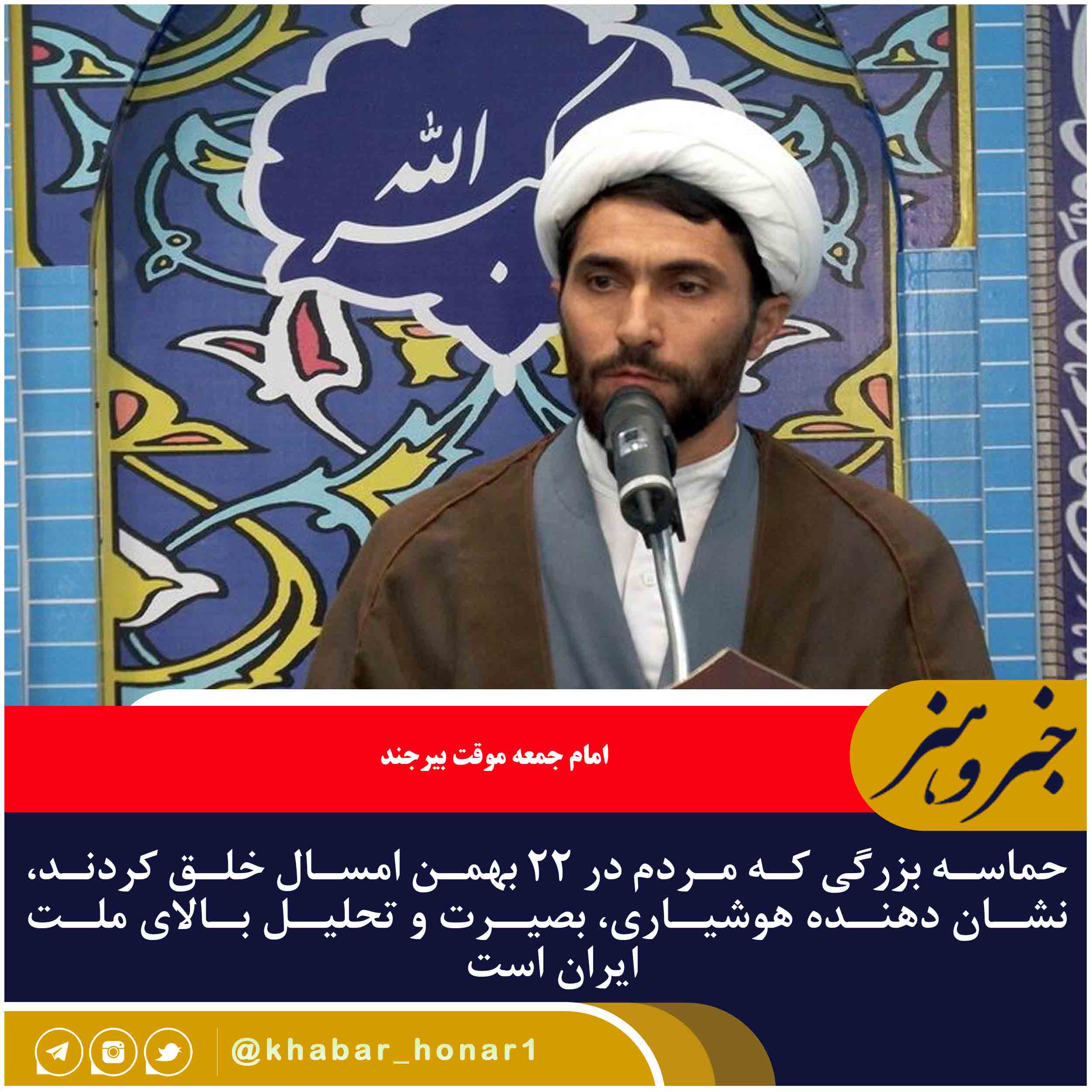 امام جمعه موقت بیرجند گفت: حماسه بزرگی که مردم در ۲۲ بهمن امسال خلق کردند، نشان دهنده هوشیاری، بصیرت و تحلیل بالای ملت ایران است.