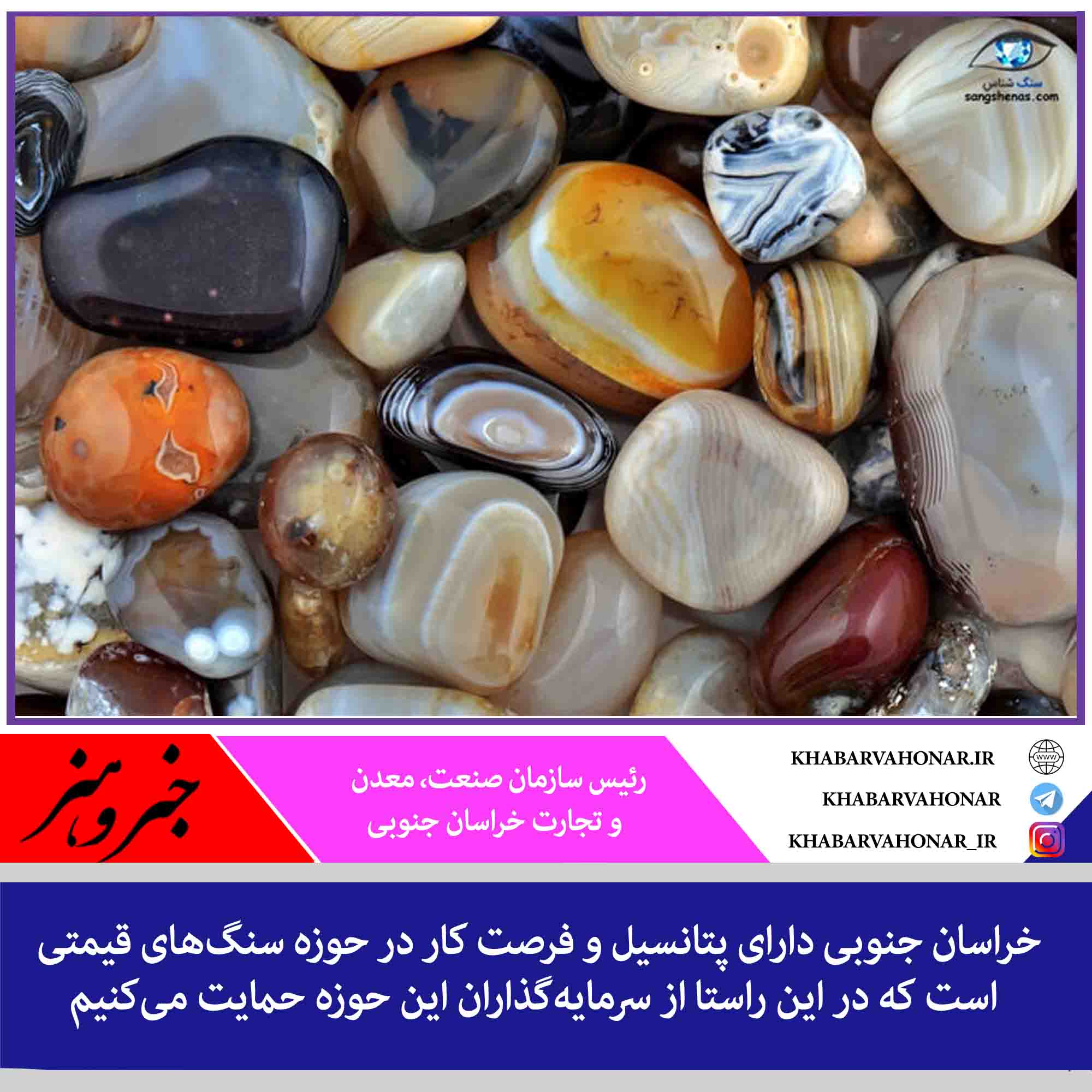 رئیس سازمان صنعت، معدن و تجارت خراسان جنوبی گفت: خراسان جنوبی دارای پتانسیل و فرصت کار در حوزه سنگهای قیمتی است که در این راستا از سرمایهگذاران این حوزه حمایت میکنیم.