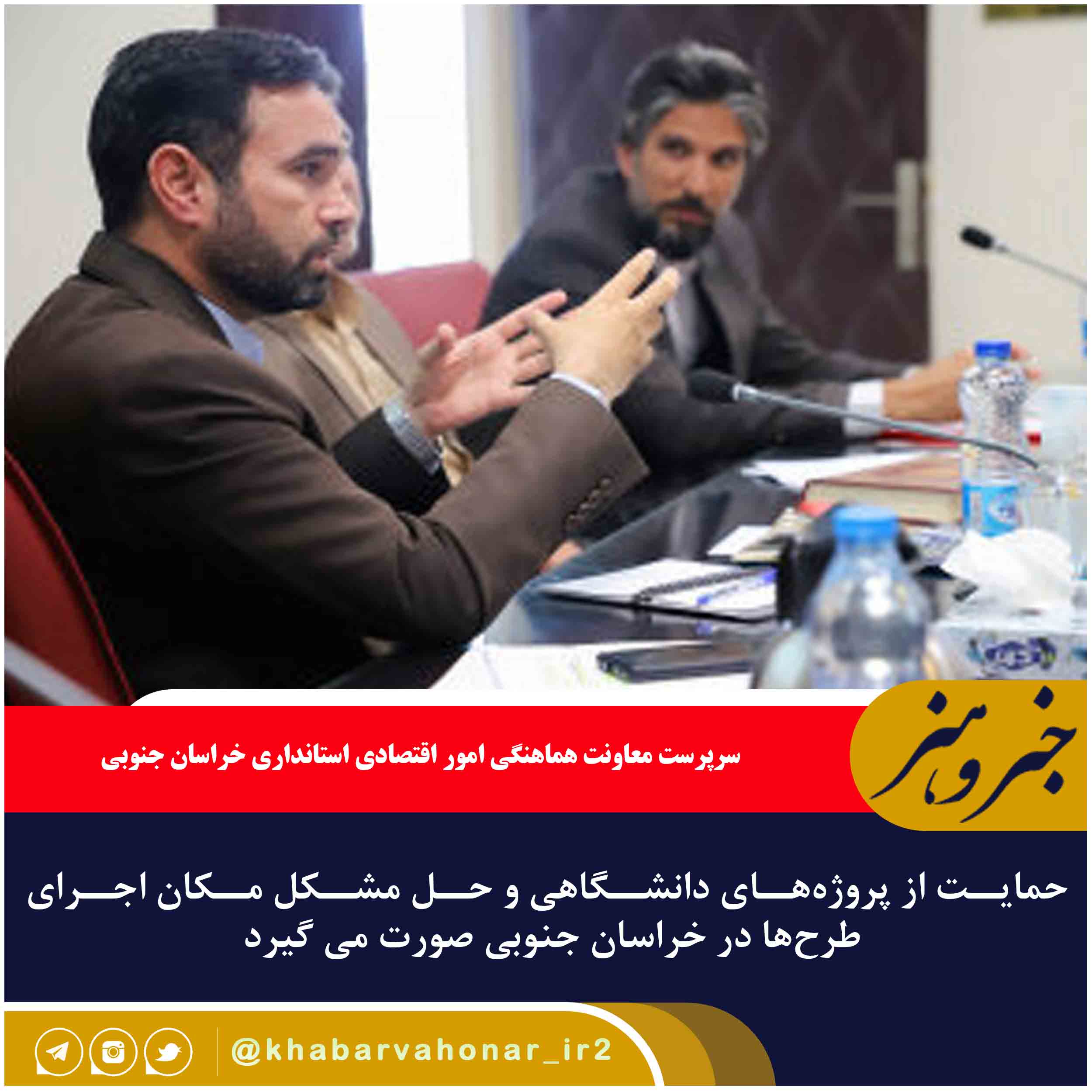 سرپرست معاونت هماهنگی امور اقتصادی استانداری خراسان جنوبی با اعلام حمایت از طرحها و پروژهها و استمرار برگزاری جلسات، گفت: جهاد کشاورزی اعلام آمادگی کرده تا مرکز حمایت از شرکتهای دانش بنیان کشاورزی را در مجموعه محمدیه راهاندازی کند؛ بنابراین دانشگاهها و پارک علم و فناوری میتوانند با وفاق و همدلی در این مرکز مستقر شوند