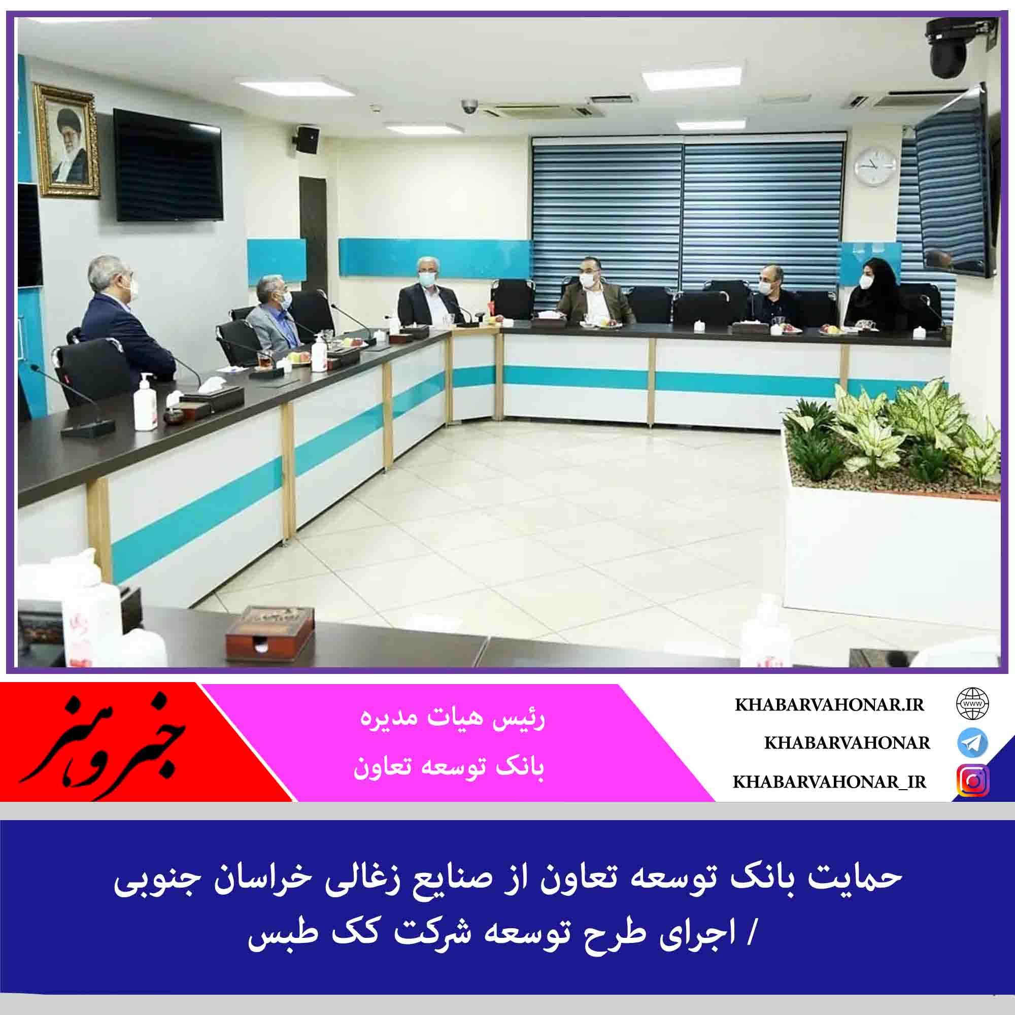 رئیس هیات مدیره بانک توسعه تعاون یادآور شد:در صورتی که منابع جدیدی از صندوق توسعه ملی در اختیار بانک قرار گیرد می توان از این منابع در جهت تامین مالی واحدهای مهم صنعتی و تولیدی از جمله طرح های توسعه شرکت «کک طبس » استفاده نمود.