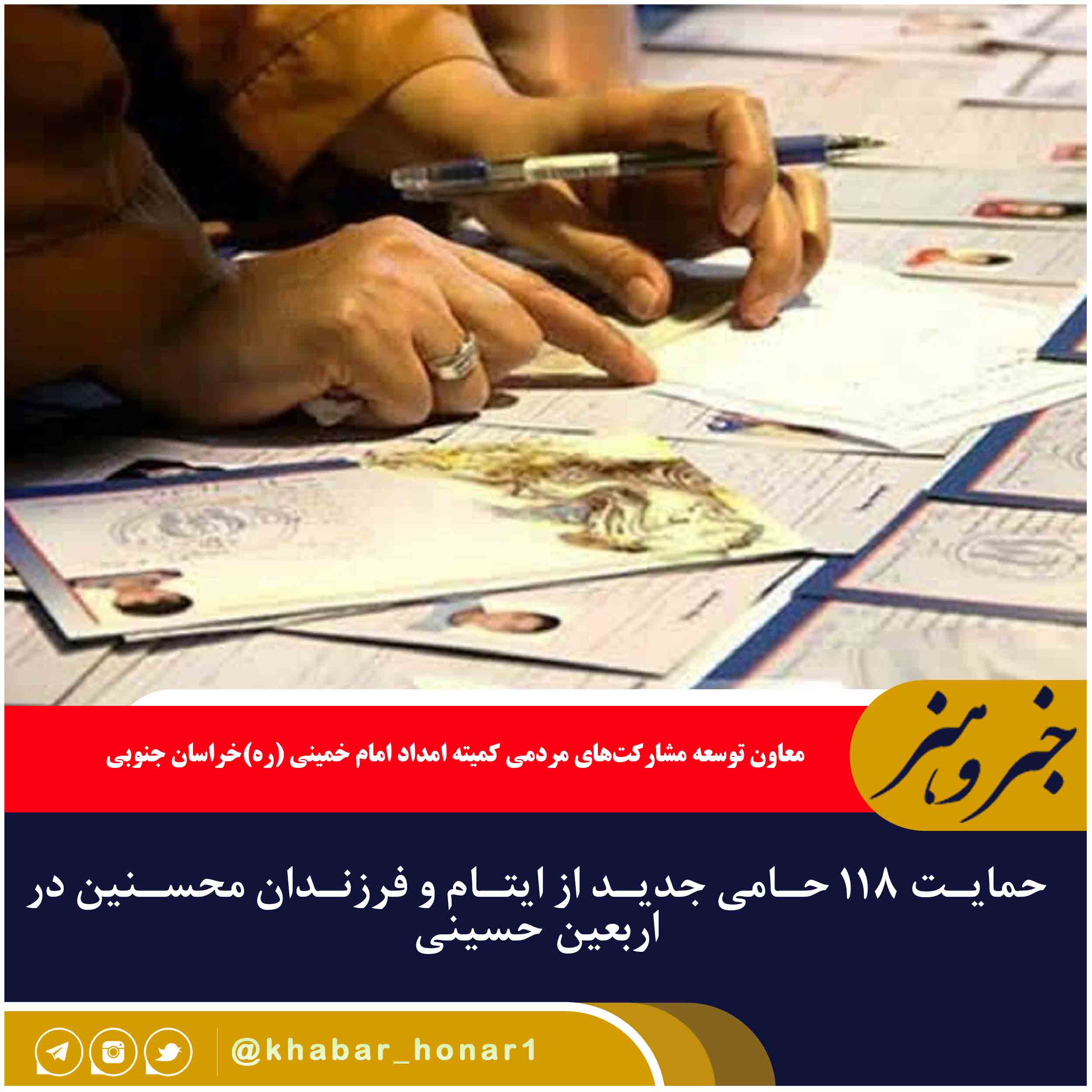 ۱۱۸ حامی جدید در اربعین حسینی حمایت مادی و معنوی از ایتام و فرزندان محسنین خراسان جنوبی را برعهده گرفتند.