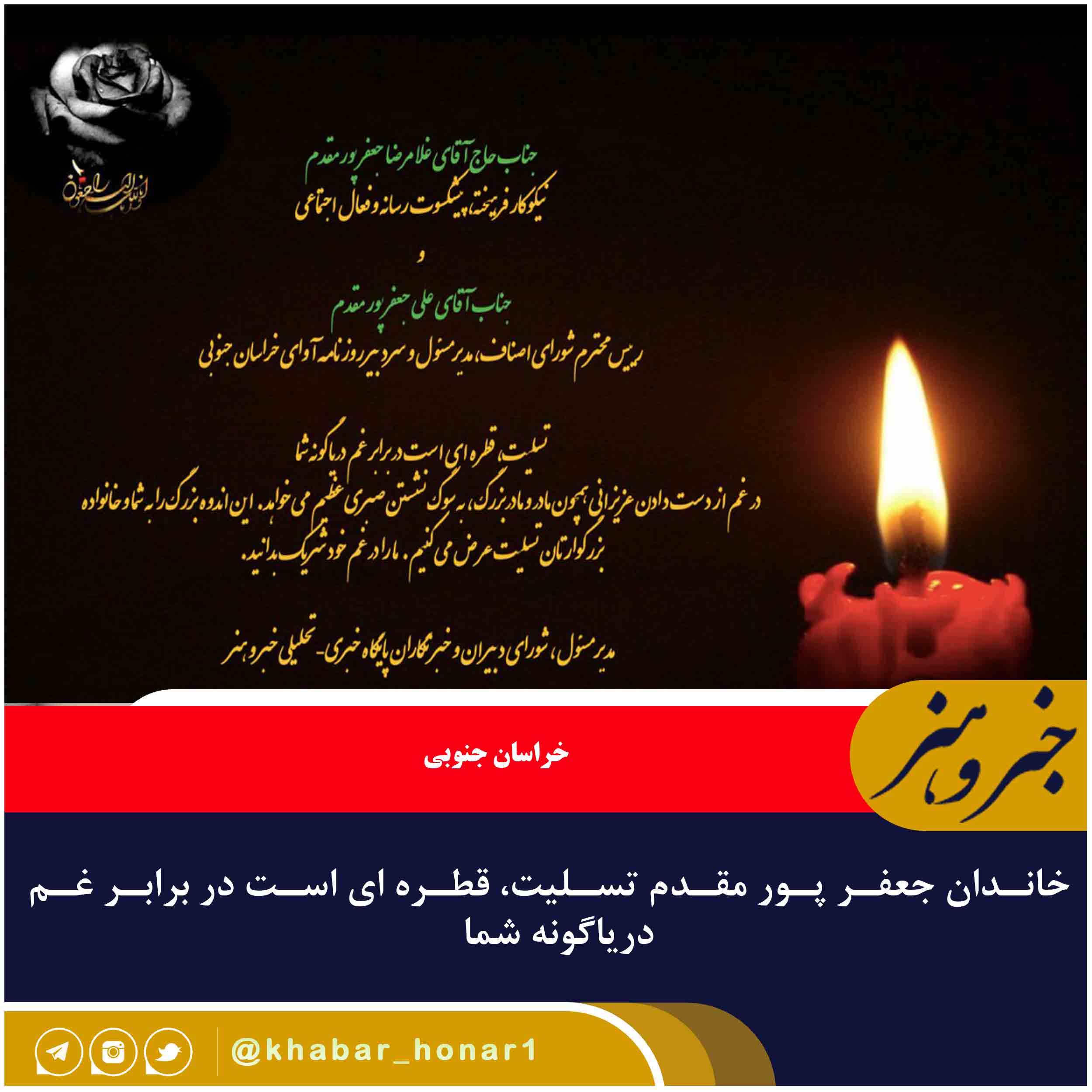 تسلیت، قطره ای است در برابر غم دریاگونه شما