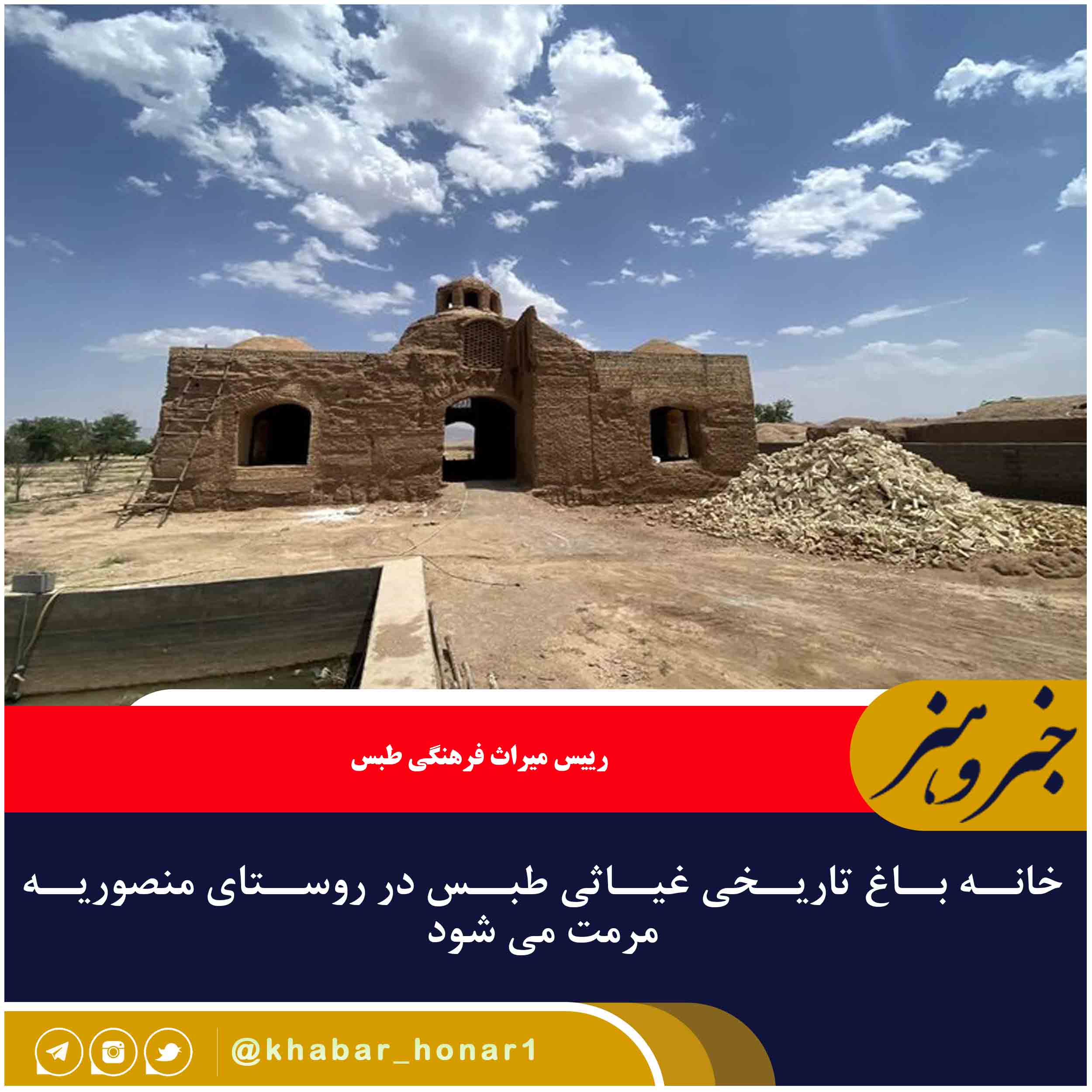 رییس میراث فرهنگی طبس گفت:خانه باغ تاریخی غیاثی طبس در روستای منصوریه مرمت می شود.