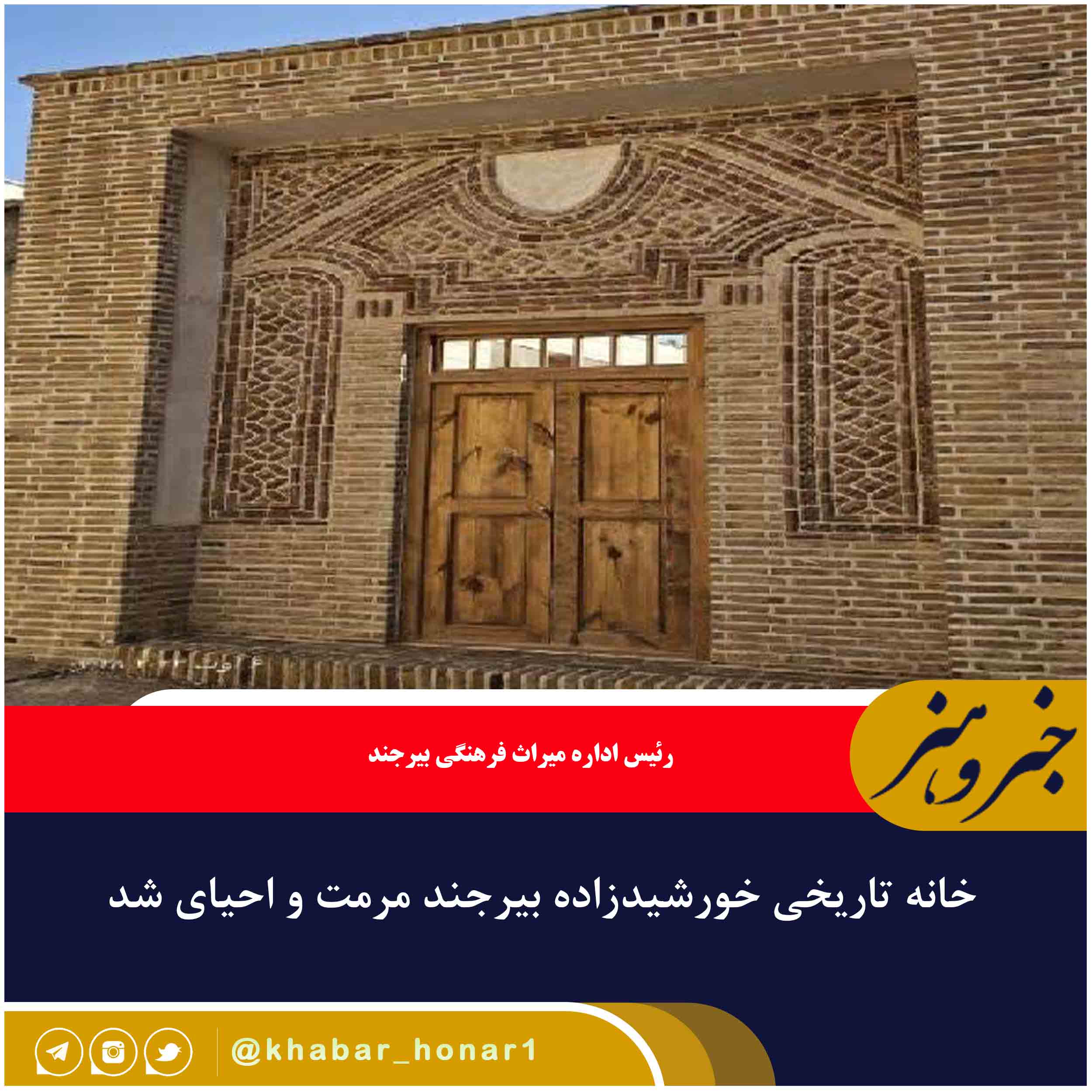 رئیس اداره میراث فرهنگی بیرجند از مرمت و احیای خانه تاریخی خورشید زاده شهرستان خبر داد.