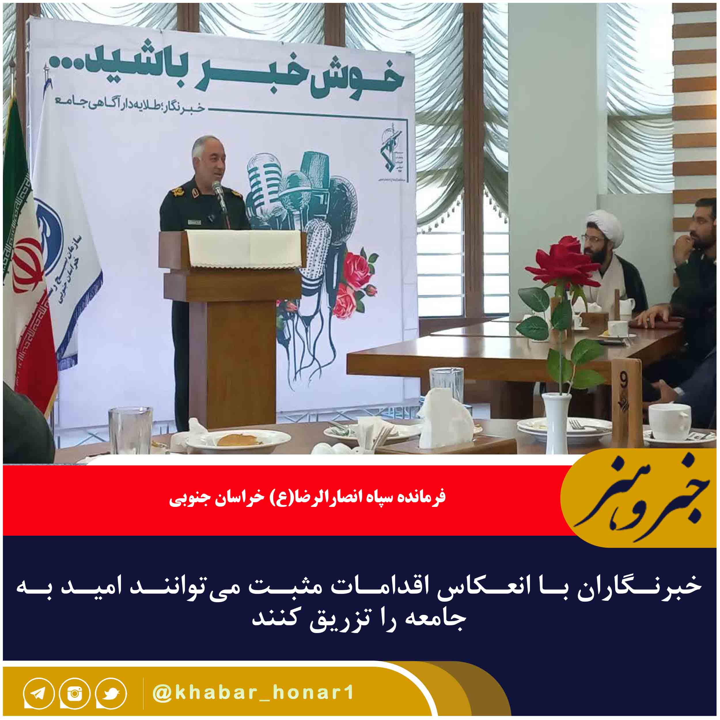 فرمانده سپاه انصارالرضا(ع) خراسان جنوبی گفت: خبرنگاران در هدایت جامعه نقش مهمی بر عهده دارند و با امیدآفرینی که رسالت اصلی آنان است میتوانند به تعالی جوامع کمک کنند.