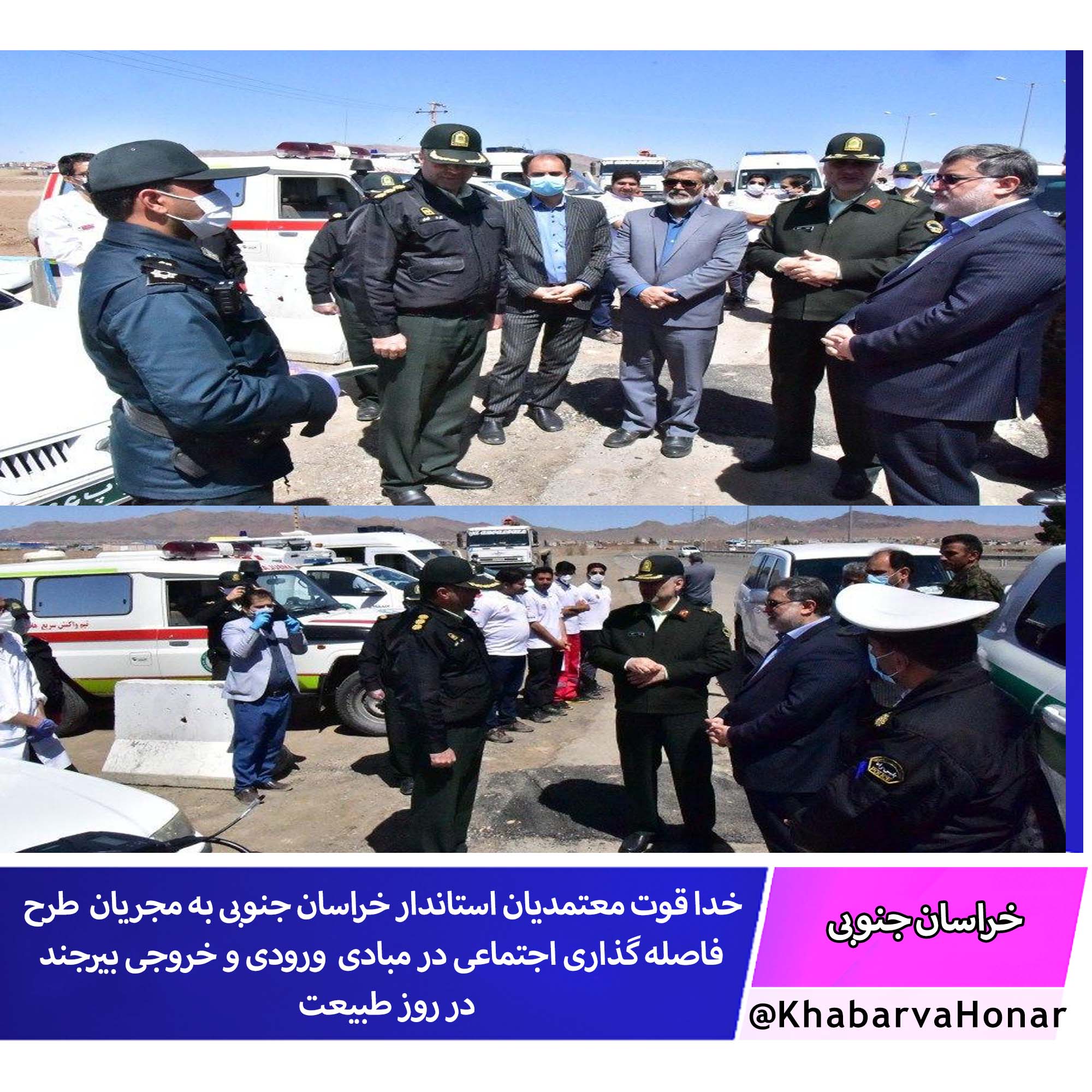 خدا قوت معتمدیان استاندار خراسان جنوبی به مجریان طرح فاصله گذاری اجتماعی در مبادی ورودی و خروجی بیرجند در روز طبیعت