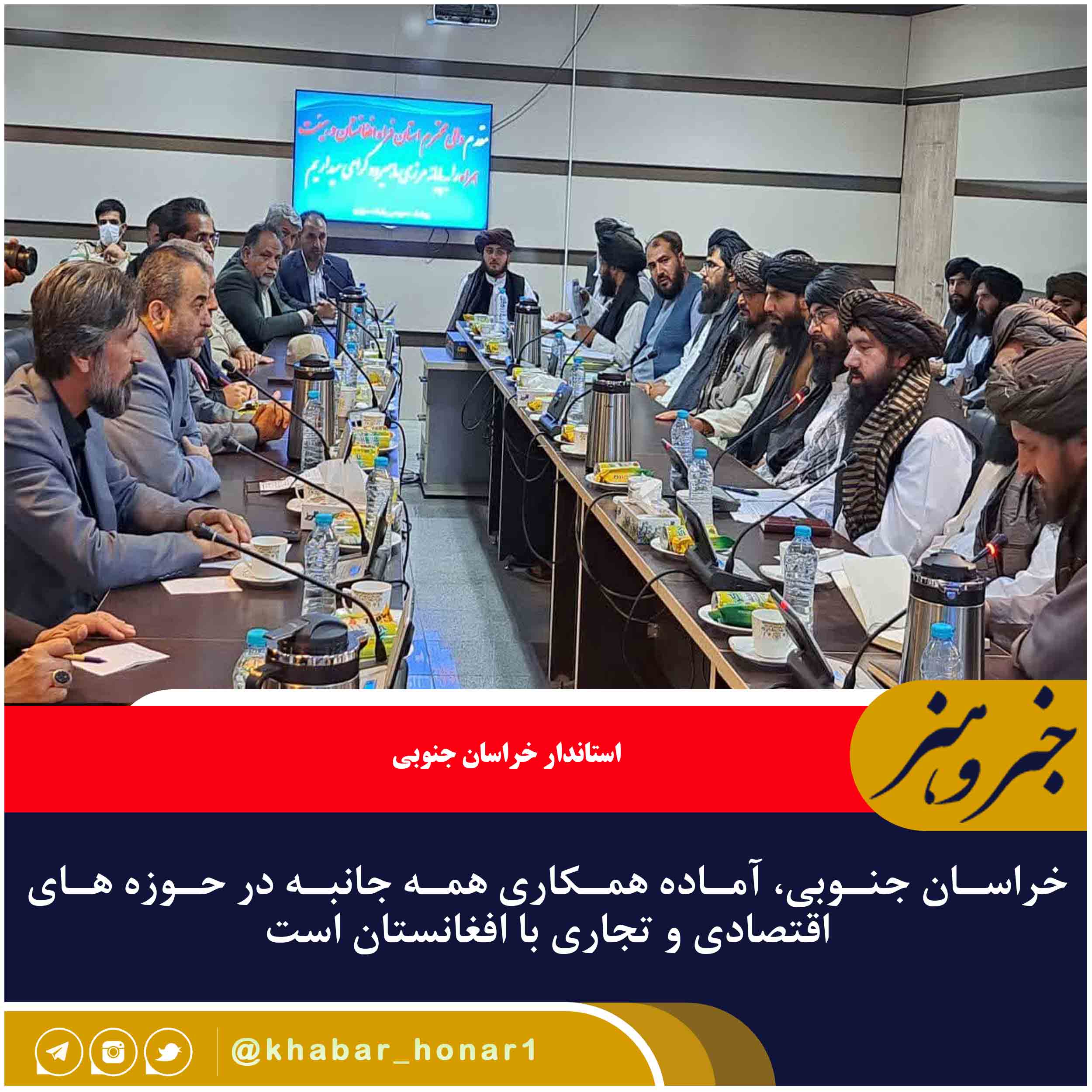 🔹مقام عالی دولت در خراسان جنوبی به آمادگی این استان برای همکاری با فراه افغانستان در حوزه های بازسازی، زیرساختی و تجاری، همکاری با بخش خصوصی و آموزش نیروی انسانی متخصص، امنیت در مرزهای مشترک، مشارکت در طرح های آموزشی و بهداشتی و علمی و فرهنگی اشاره و بر آمادگی خراسان جنوبی برای مراودات بیشتر با استان فراه افغانستان تأکید کرد.