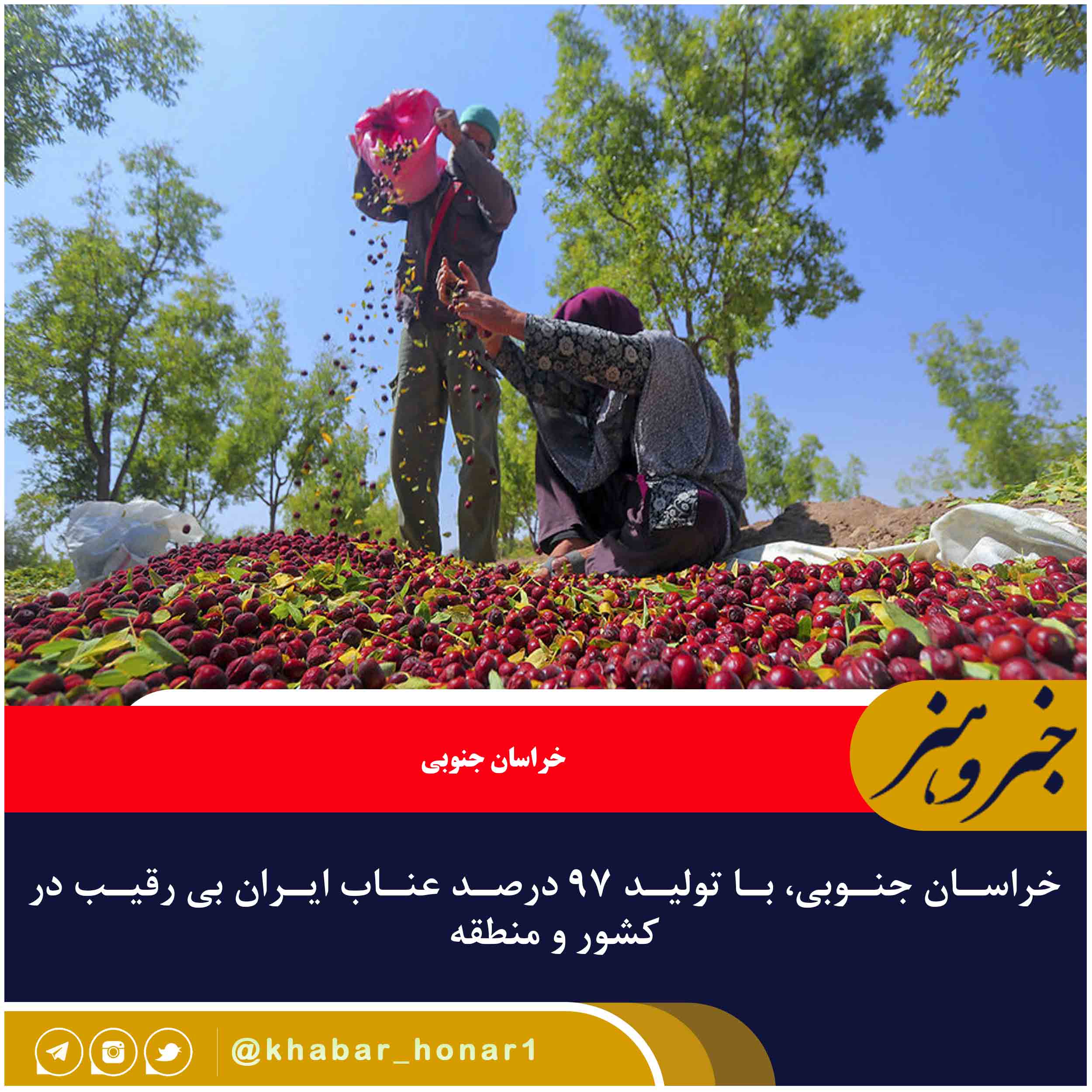 ۹ هزار و ۵۰۰ بهرهبردار در زمینه تولید عناب در استان خراسان جنوبی فعالیت دارند و حدود ۴۵ درصد اشتغال استان در بخش کشاورزی بهویژه محصولات راهبردی (زرشک، عناب و زعفران) فعال است همچنین توسعه صادرات این محصولات در دستور کار متولیان قرار دارد.