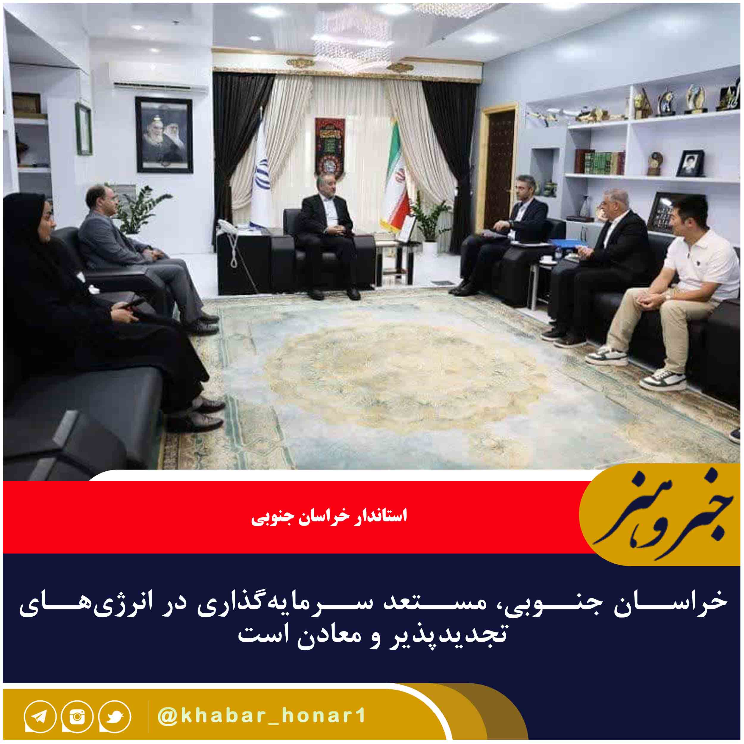 🔹 استاندار خراسان جنوبی گفت: خراسان جنوبی با ظرفیتهای گسترده در حوزه انرژی خورشیدی، بادی و معادن، از امنترین و مستعدترین استانهای کشور برای جذب سرمایهگذاری خارجی است.