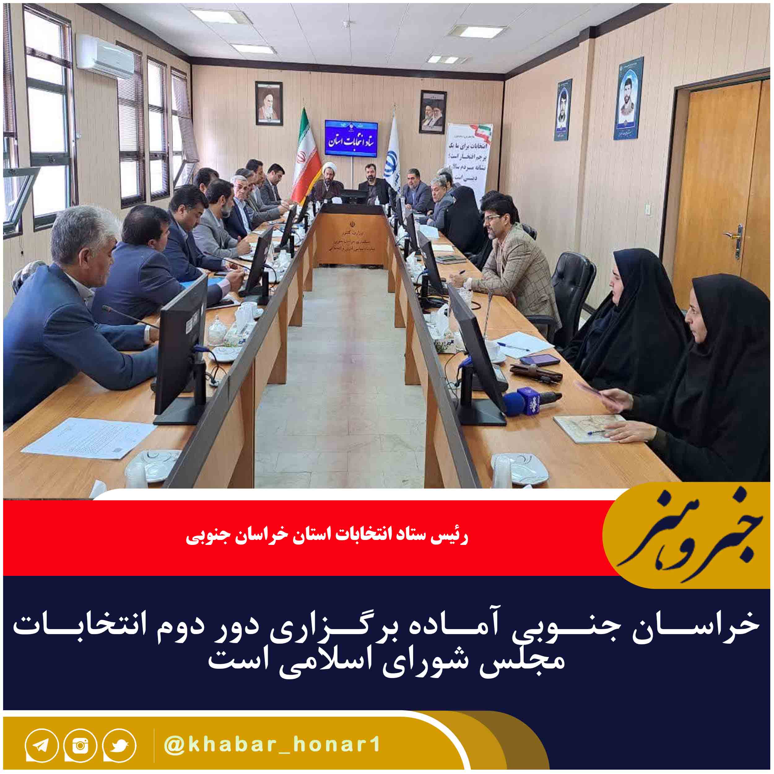 ?رئیس ستاد انتخابات استان خراسان جنوبی گفت: با برنامه ریزی و برگزاری جلسات مختلف و تدابیر اندیشیده شده، ستاد انتخابات استان آمادگی لازم برای برگزاری انتخابات باشکوه، سالم، امن و رقابتی را در ۲۱ اردیبهشت دارد.