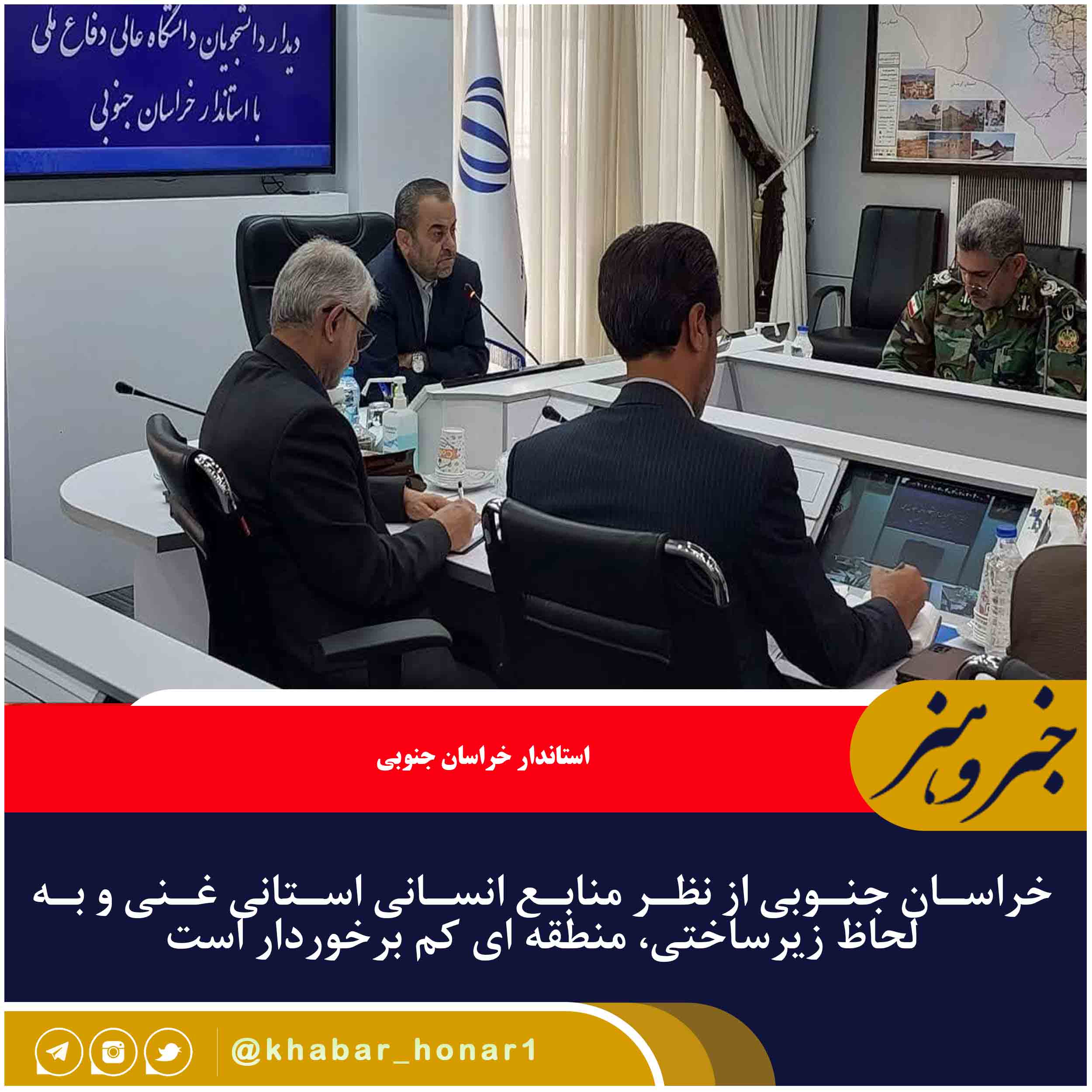 جواد قناعت با تأکید بر این مطلب در جلسه دیدار دانشجویان دانشگاه عالی دفاع ملی ، خاطرنشان کرد: خراسان جنوبی که از آن به عنوان شرق باشکوه یاد می کنیم، از استان های شرقی کشور است که ۳۳۱ کیلومتر مرز مشترک با افغانستان دارد.