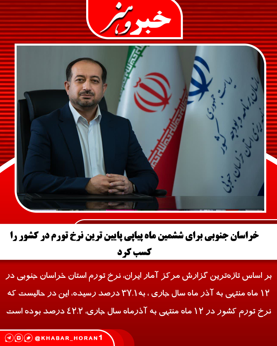 به گزارش خبر و هنر علی بهدانی در همین خصوص افزود: بر اساس تازهترین گزارش مرکز آمار ایران، نرخ تورم استان خراسان جنوبی در ۱۲ ماه منتهی به آذر ماه سال جاری ، به۳۷.۱ درصد رسیده، این در حالیست که نرخ تورم کشور در ۱۲ ماه منتهی به آذرماه سال جاری، ۴۲.۲ درصد بوده است. هرچند نرخ تورم ۳۷.۱ درصدی، علیرغم تمام تلاش های انجام شده و جلسات و پیگیری های مستمر، مطلوب و ایده آل مسئولین دلسوز استان نیست و مدیران استان، خود را موظف و مکلف به اهتمام و تلاش جدی جهت کاهش این نرخ و ایجاد شرایط بسیار مناسب تر اقتصادی برای مردم قدرشناس خراسان جنوبی می دانند.