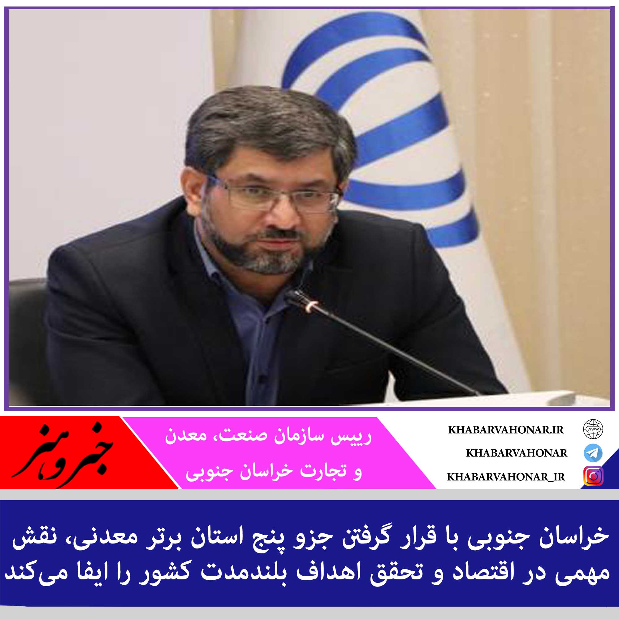 رییس سازمان صنعت، معدن و تجارت خراسان جنوبی گفت: این استان با قرار گرفتن جزو پنج استان برتر معدنی، نقش مهمی در اقتصاد و تحقق اهداف بلندمدت کشور را ایفا میکند.