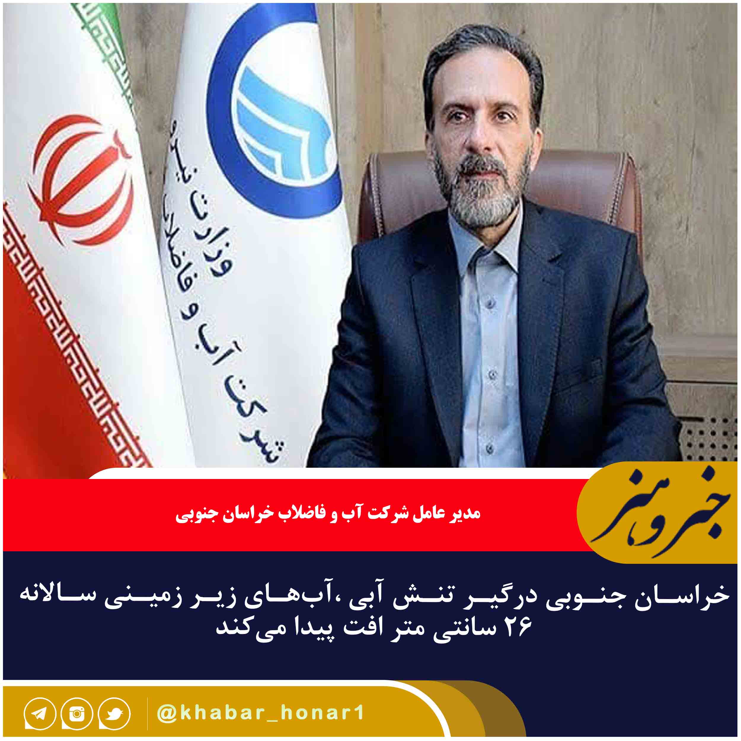 وی با بیان اینکه ۱۰۰ درصد مساحت خراسان جنوبی متأثر از خشکسالی است، افزود: در سال ۲۶ سانتی متر سطح آفت آبهای زیر زمینی را داریم.