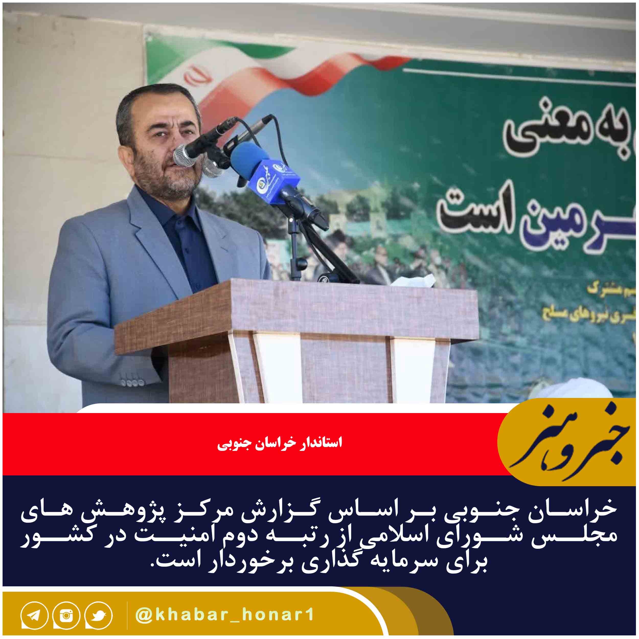 ?استاندار خراسان جنوبی گفت: خراسان جنوبی بر اساس گزارش مرکز پژوهش های مجلس شورای اسلامی از رتبه دوم امنیت در کشور برای سرمایه گذاری برخوردار است.