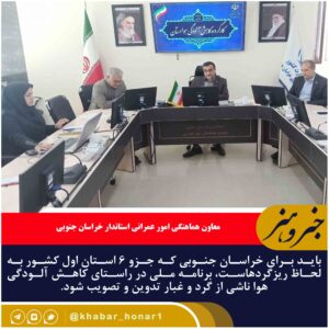 معاون هماهنگی امور عمرانی استاندار خراسان جنوبی گفت: باید برای خراسان جنوبی که جزو ۶ استان اول کشور به لحاظ ریزگردهاست، برنامه ملی در راستای کاهش آلودگی هوا ناشی از گرد و غبار تدوین و تصویب شود.