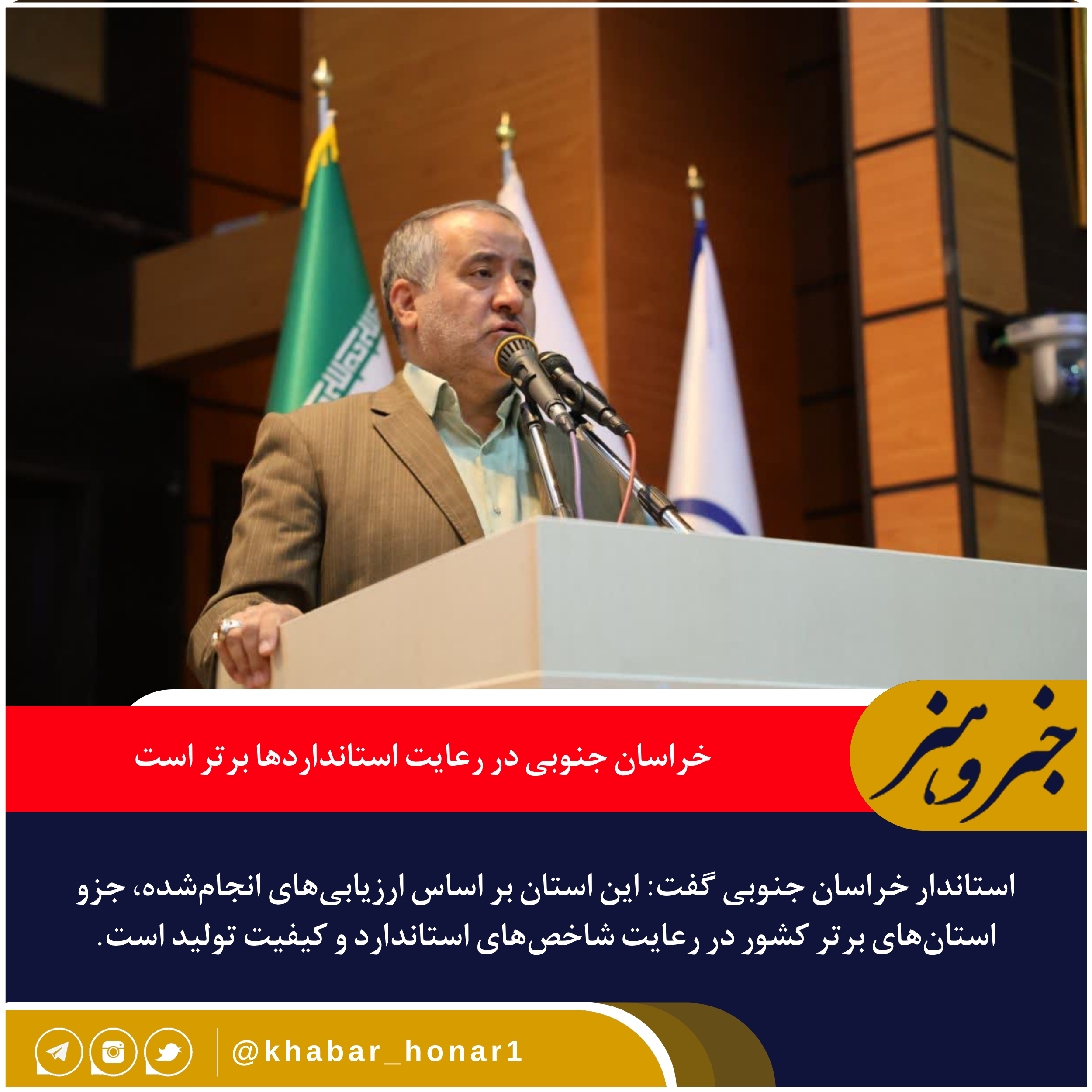 «بر اساس ارزیابی‌ها، خراسان جنوبی یکی از استان‌های برتر کشور در رعایت شاخص‌های استاندارد و کیفیت تولید است و کمترین میزان برگشت کالا از سوی مصرف‌کنندگان را داشته‌ایم که این افتخار حاصل وجدان کاری تولیدکنندگان استان است.»