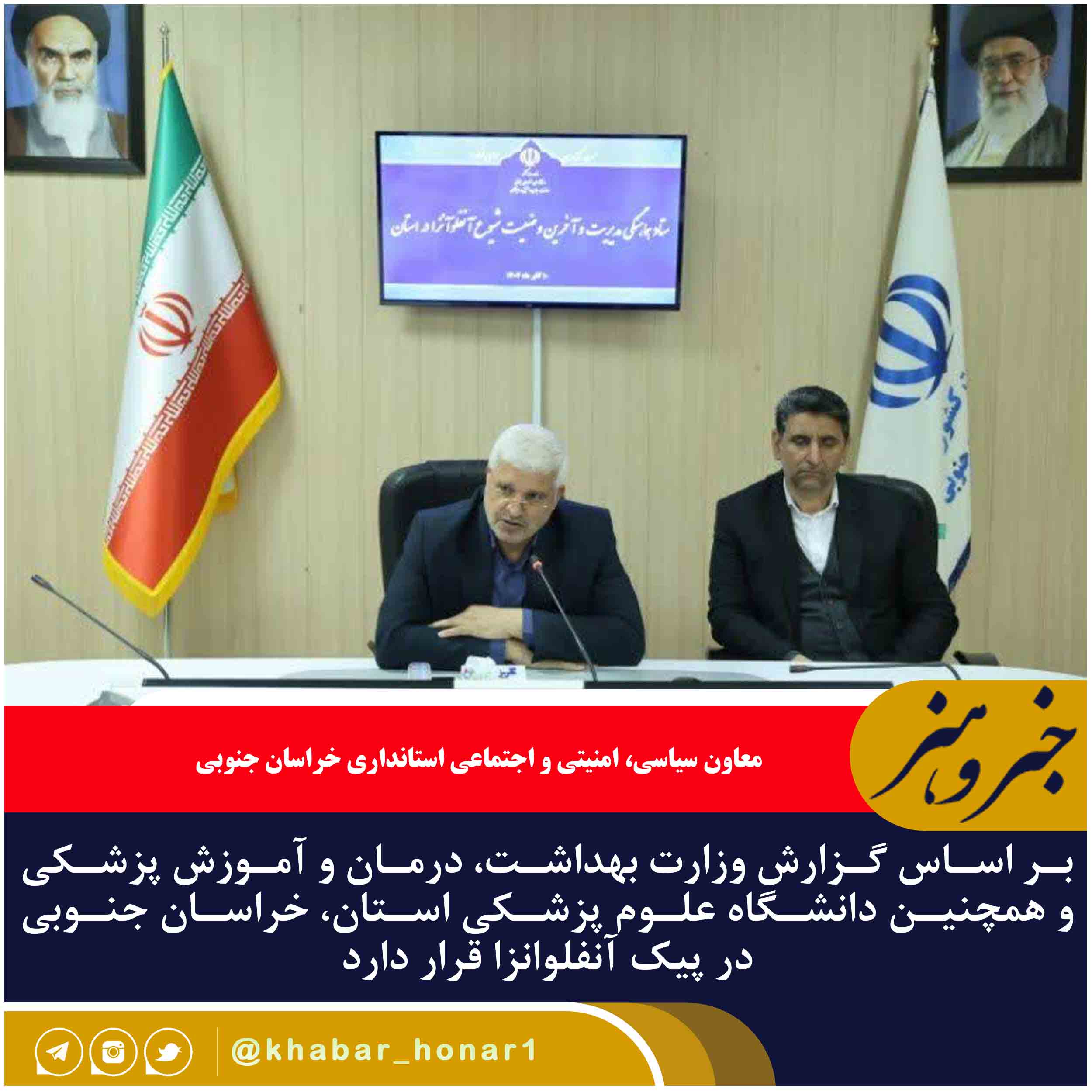 معاون سیاسی، امنیتی و اجتماعی استانداری خراسان جنوبی با اشاره به تداوم پیک آنفلوانزا گفت:در روزهای سه‌شنبه و چهارشنبه آموزش در تمامی مراکز آموزشی، دانشگاه‌ها، مدارس، پیش‌ دبستانی‌ها و مهدکودک‌های استان به صورت غیرحضوری خواهد بود.