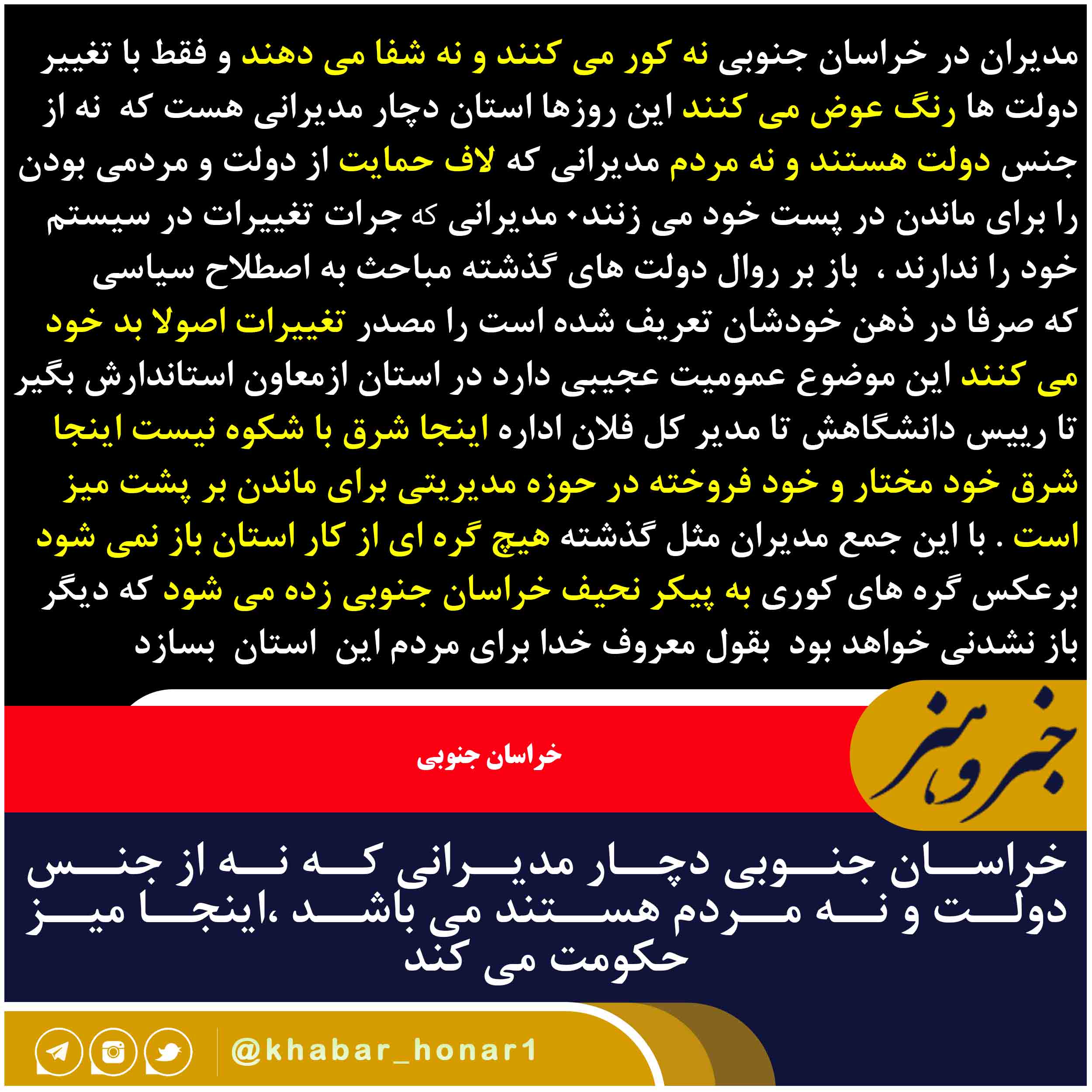 خراسان جنوبی دچار مدیرانی که نه از جنس دولت و نه مردم هستند می باشد ،اینجا میز حکومت می کند