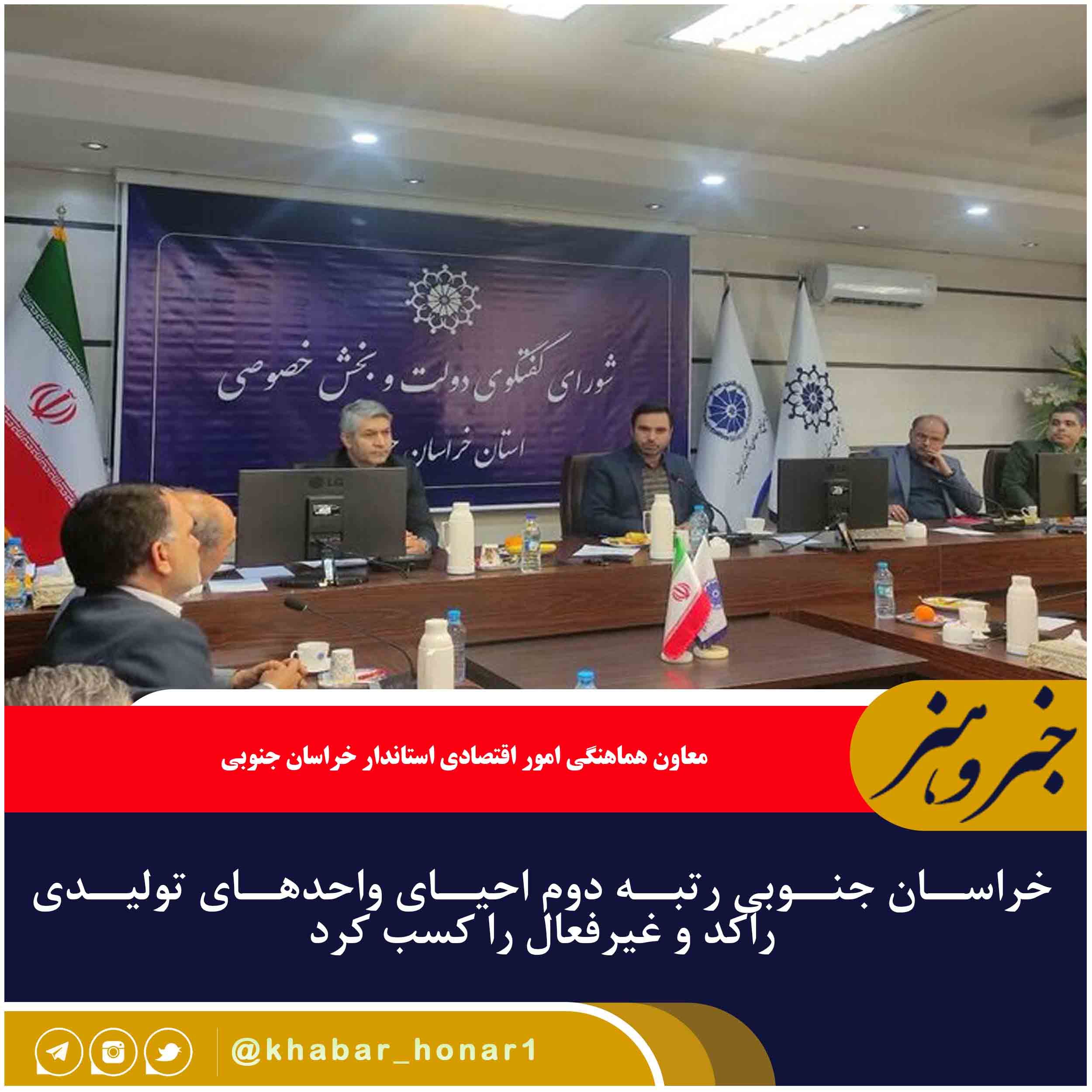 معاون هماهنگی امور اقتصادی استاندار خراسان جنوبی گفت: این استان امسال در نهضت احیای واحدهای تولیدی راکد و غیرفعال رتبه دوم کشور و در احیای معادن رتبه اول را کسب کرده است.