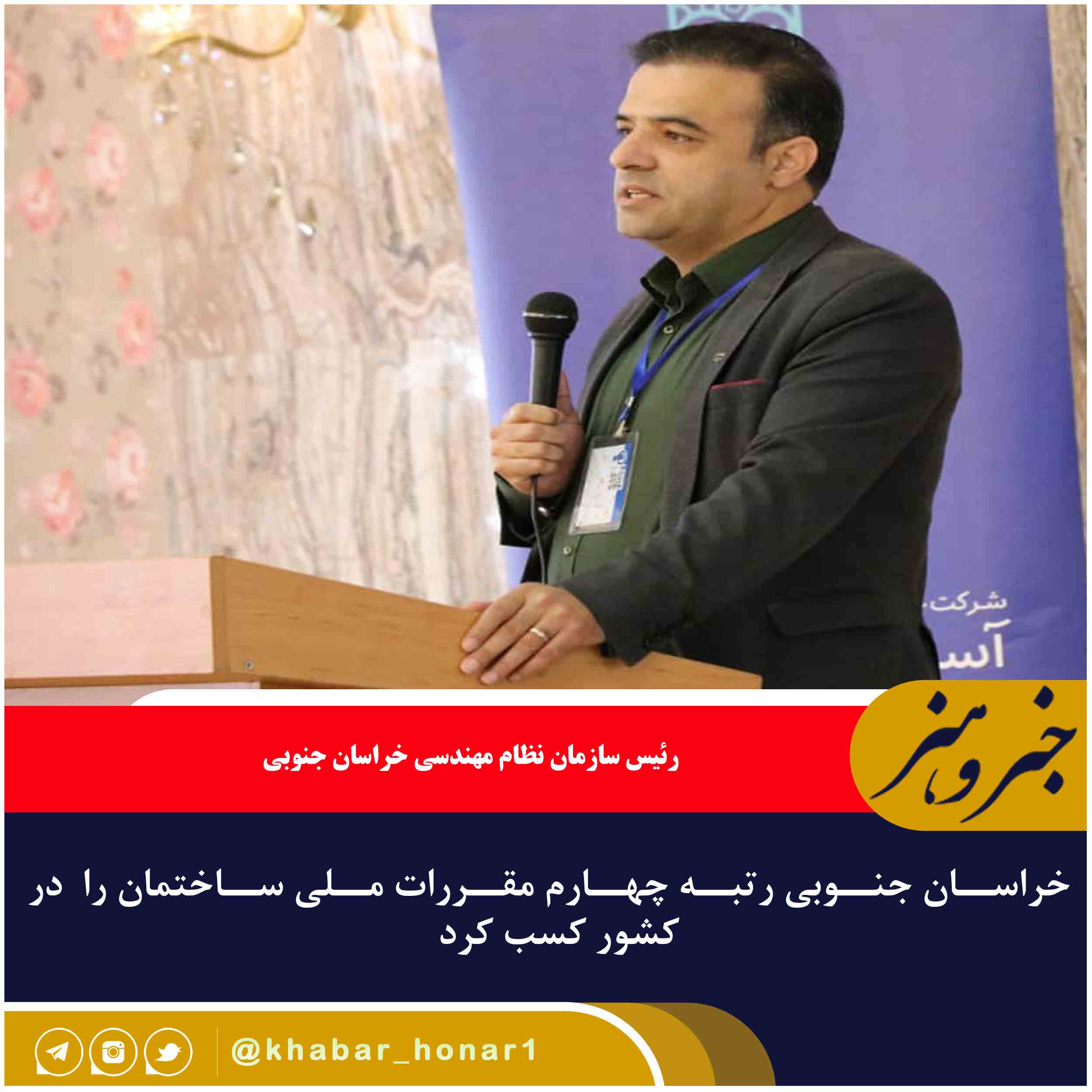 رئیس سازمان نظام مهندسی خراسان جنوبی گفت: این سازمان توانسته است در زمینه رعایت مقررات ملی ساختمان رتبه چهارم کشور را کسب کند.