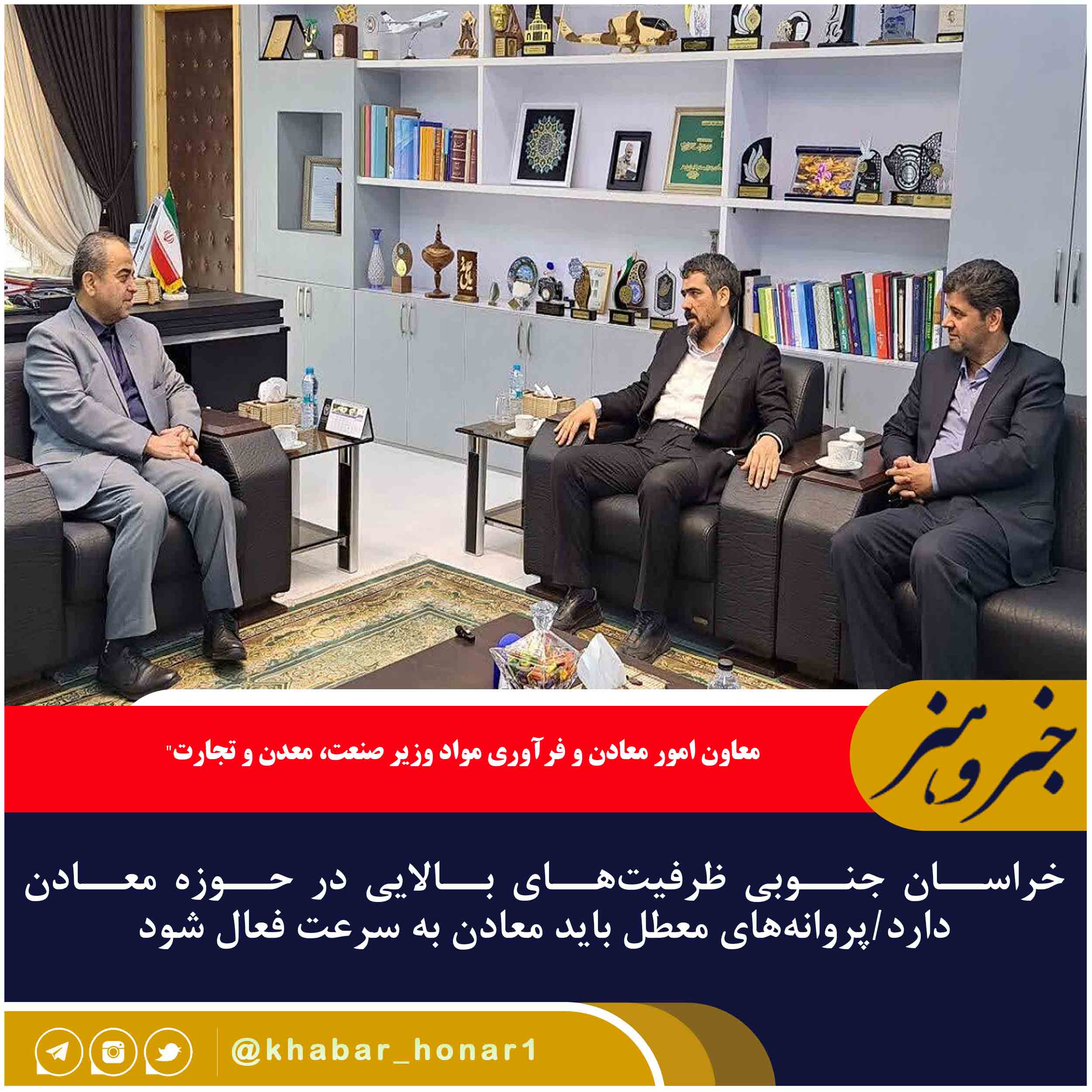 معاون وزیر صنعت، معدن و تجارت ادامه داد: خراسان جنوبی ظرفیتهای بالایی در حوزه معادن دارد که باید از گذشته اقدامات چشمگیری برای آن انجام میشد، اکنون هم با تعیین تکلیف پروانههای معطل باید معادن به سرعت فعال شود.