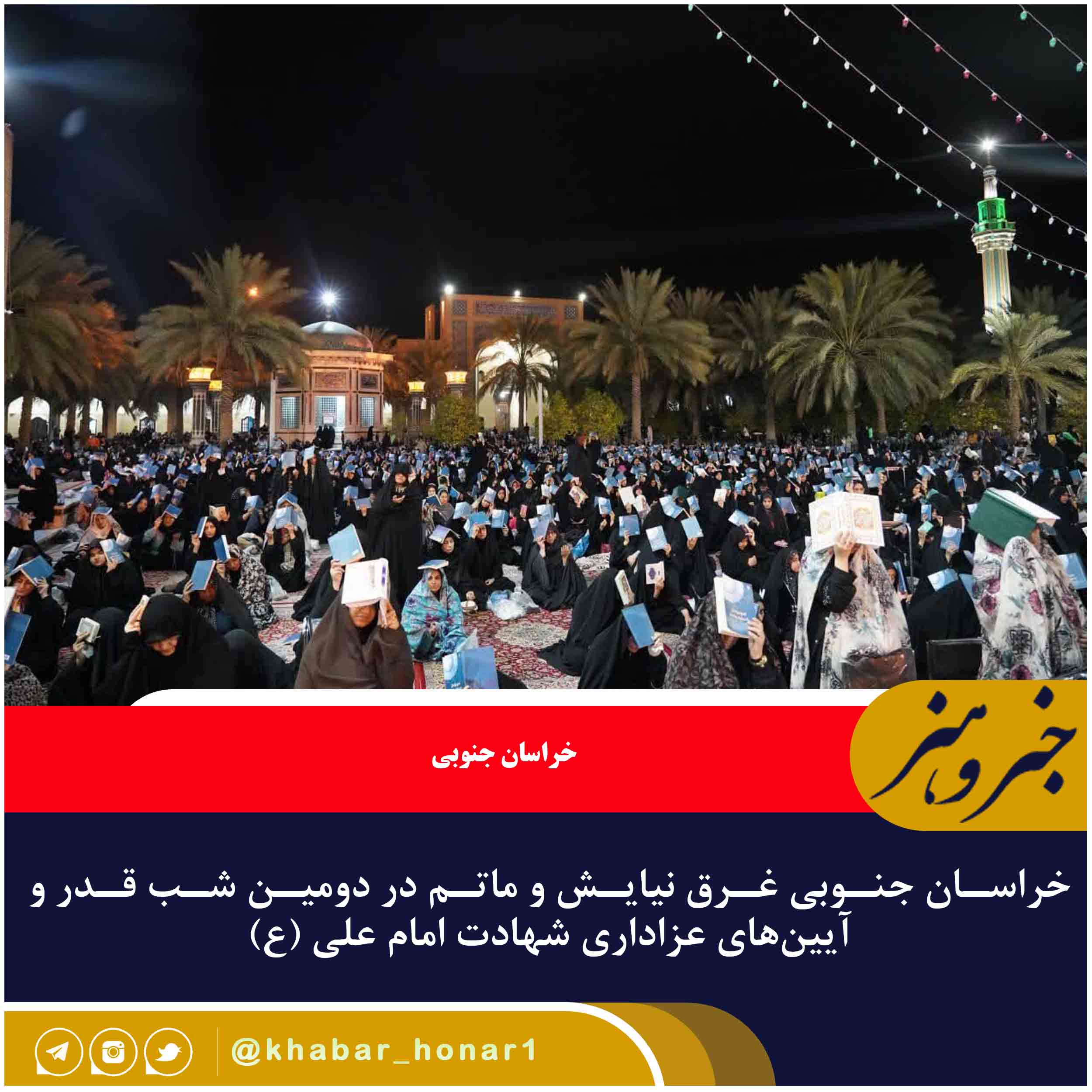آیینهای عزاداری شهادت امام علی (ع) در جای جای خراسان جنوبی با حضور پر شور مردم شهر و روستا همزمان با احیای شب ۲۱ رمضان برگزار شد و عزاداری در رثای مولای متقیان به سوگواری پرداختند.
