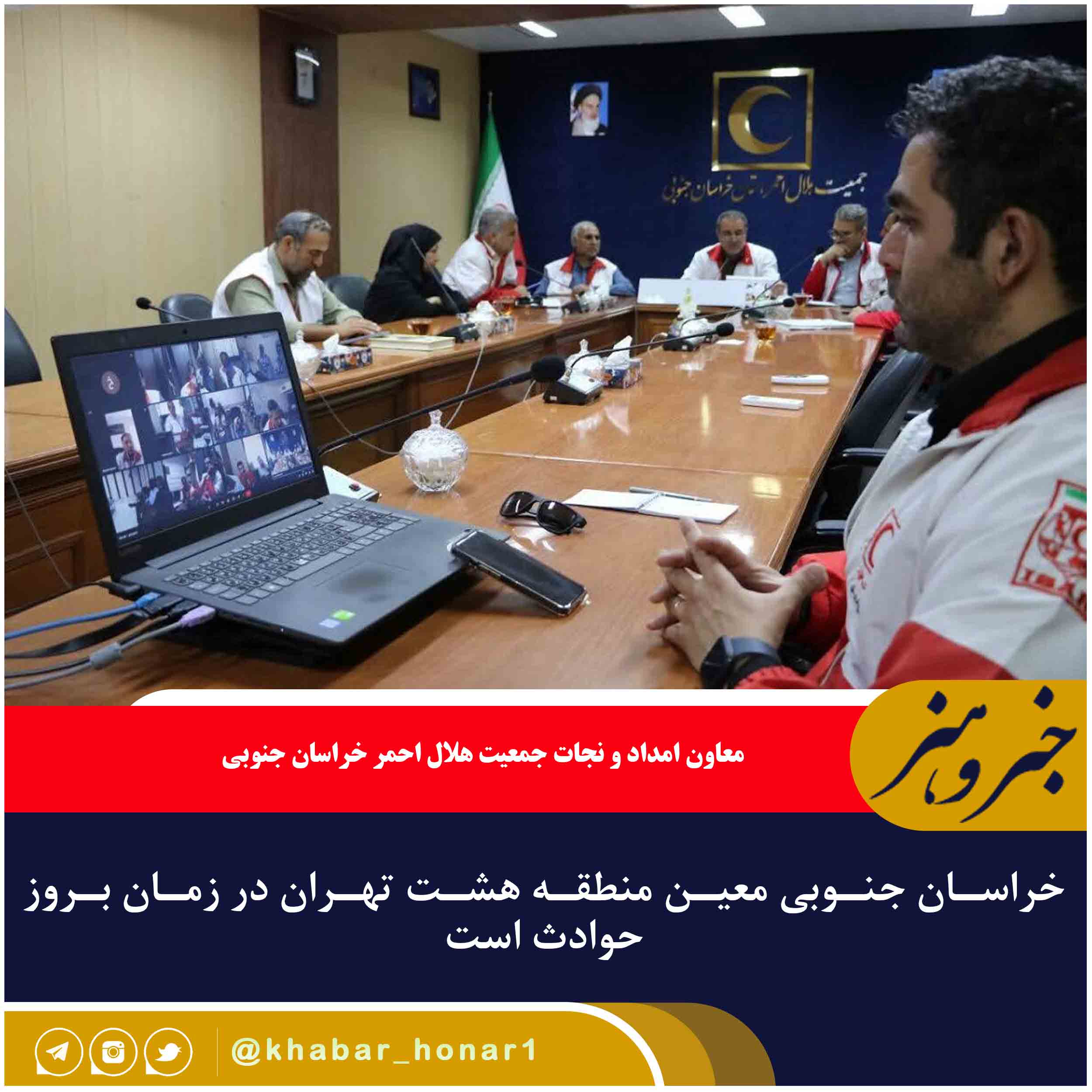 معاون امداد و نجات جمعیت هلال احمر خراسان جنوبی گفت: هلال احمر استان در صورت بروز زلزله و نیاز به امدادرسانی، معین منطقه هشت استان تهران است.